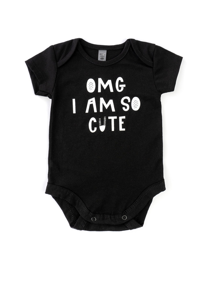 This stylish black baby bodysuit with white print OMG I’m SO CUTE is a perfect addition to your baby’s wardrobe. Designed as a unisex baby bodysuit, it suits both boys and girls.