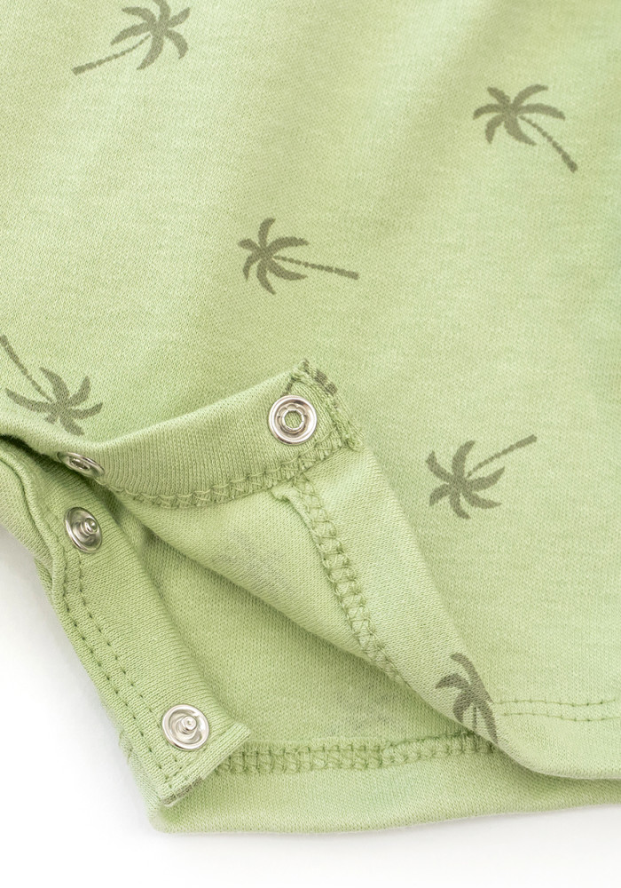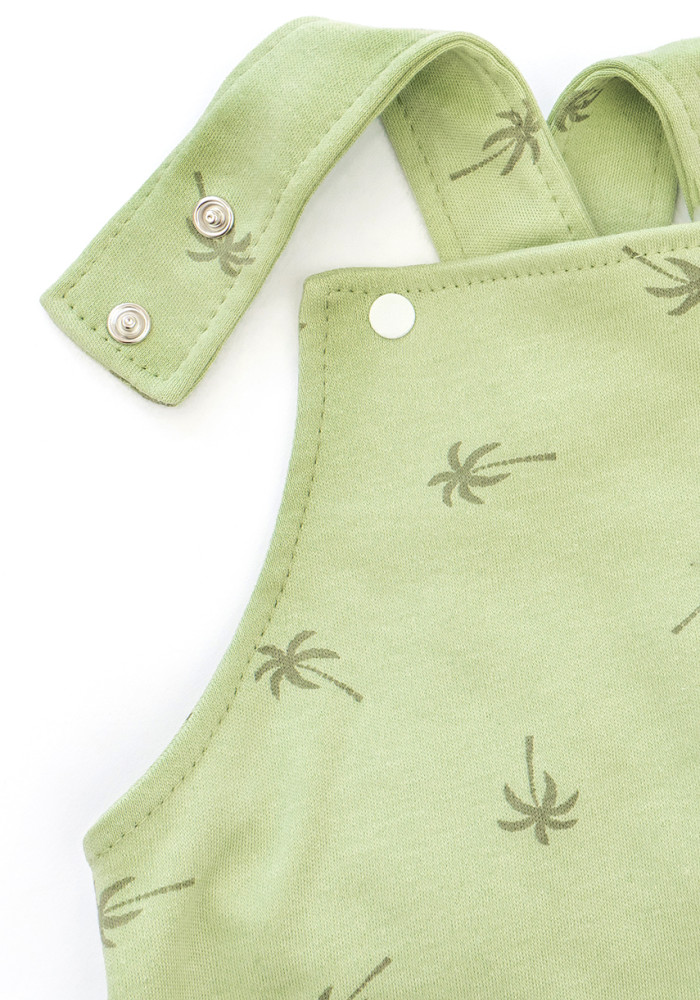 There are snap buttons at the bottom of the romper for quick diaper changes without fully undressing the child. The adjustable double-row snaps on the straps allow for a better fit and extended use as your child grows.