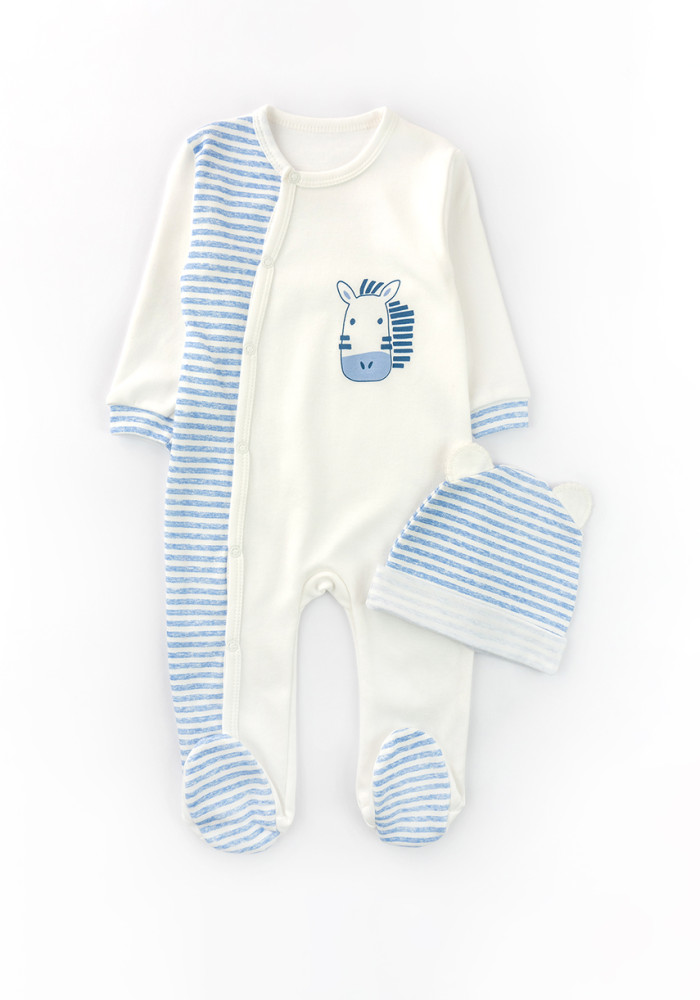 Looking for the perfect daily outfit for a newborn? This knit cotton romper with hat is a cozy and stylish choice.