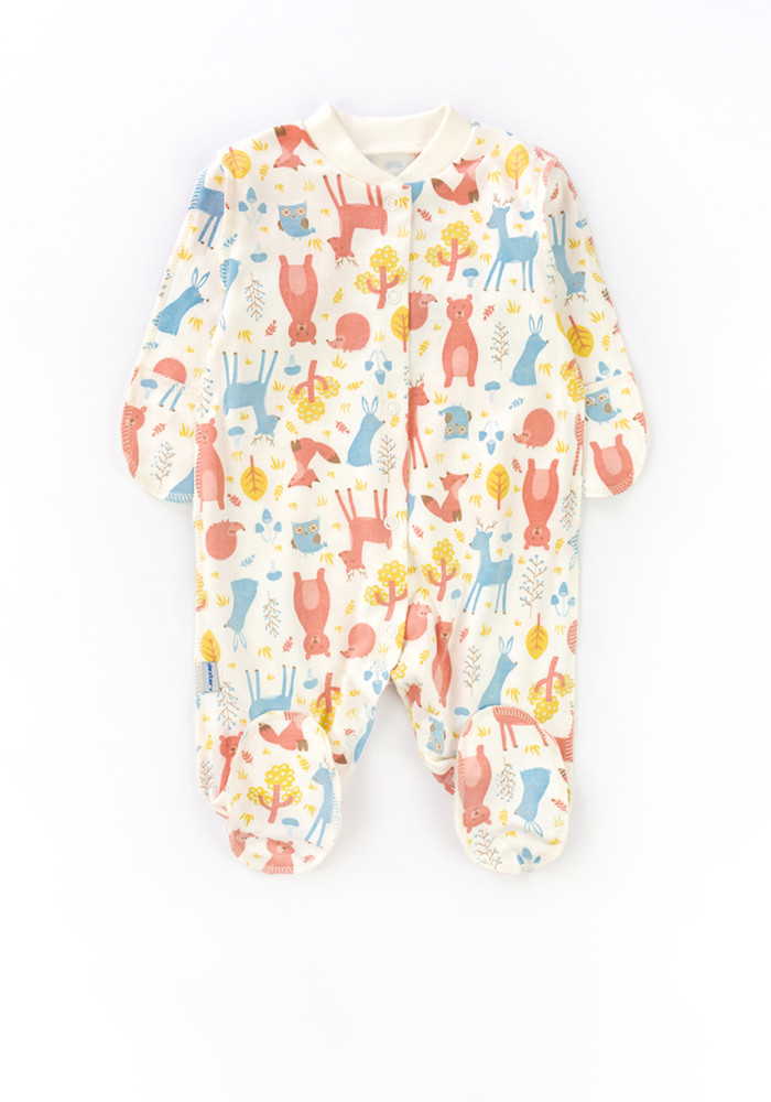 This forest-themed sleepsuit made of 100% cotton interlock offers ultimate comfort for your baby from day one.