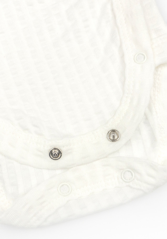 Однотонный белый цвет делает боди универсальным — его можно носить и мальчикам, и девочкам. Кнопки позволяют легко переодевать ребёнка, не причиняя дискомфорта.