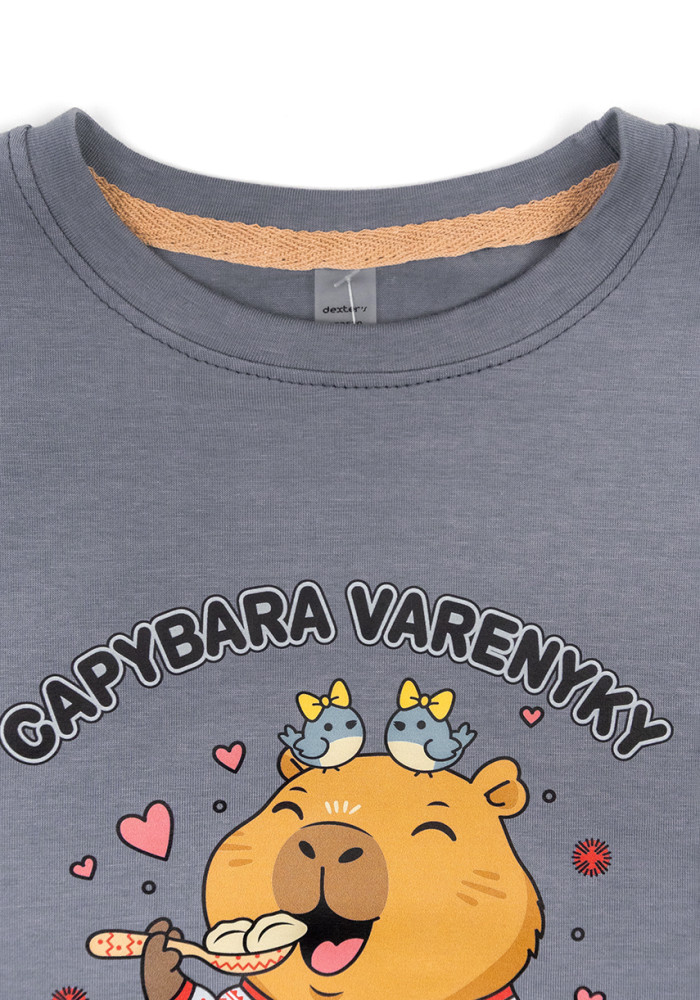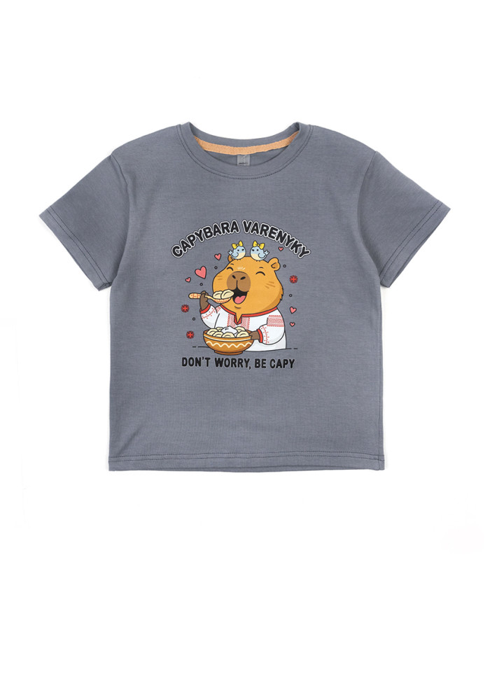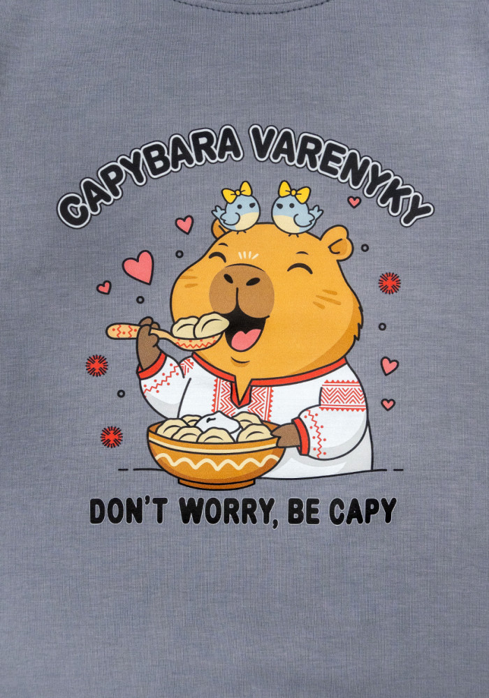 A stylish kids t-shirt by Dexter’s featuring a bright capybara print with Ukrainian-inspired design. This model is made for everyday wear, combining comfort, durability, and modern street style.