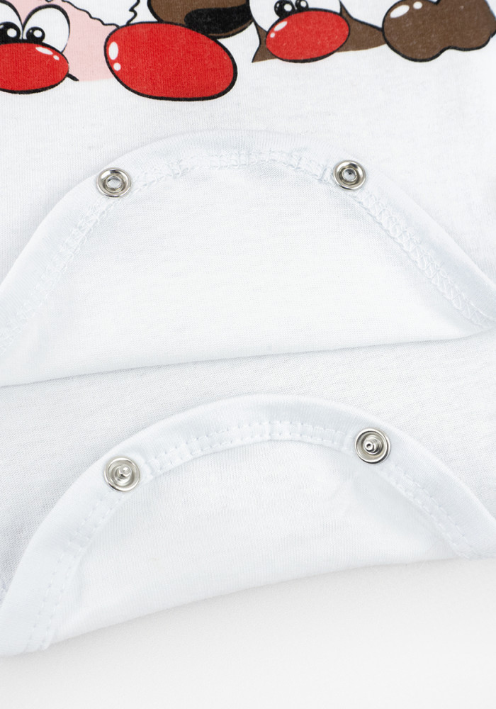 Baby bodysuit from the Christmas collection. The model is made of comfortable, lightweight knit fabric.
