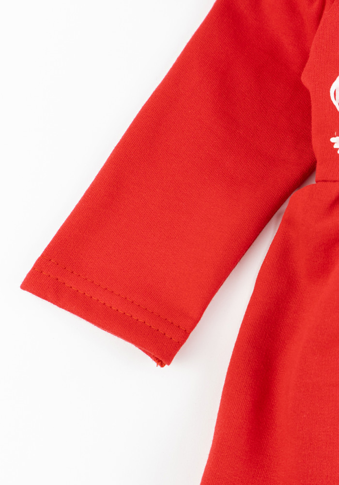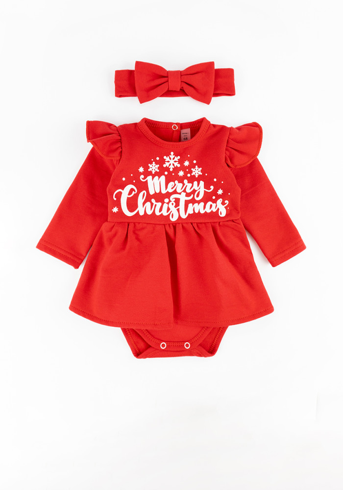 A charming red bodysuit dress with a festive print — perfect for Christmas celebrations, holiday photoshoots, or as a thoughtful gift.
