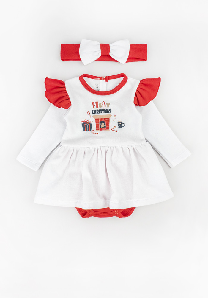 Snap buttons on the back and crotch make dressing and diaper changes easy and convenient — ideal even for newborns. This baby girl Christmas dress bodysuit with headband makes a great gift or seasonal outfit.