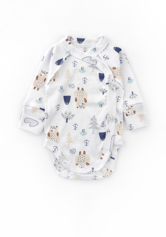 The adorable bear print adds warmth and coziness to the design. Perfect for hospital use or daily wear during the first months.