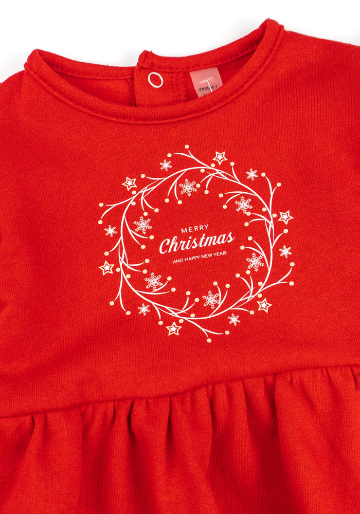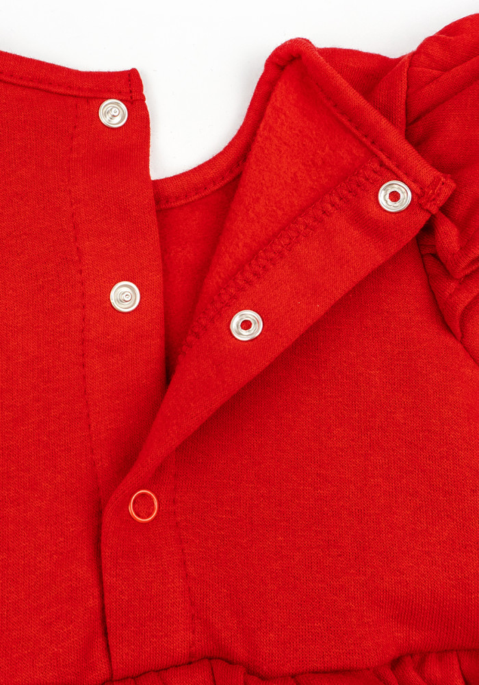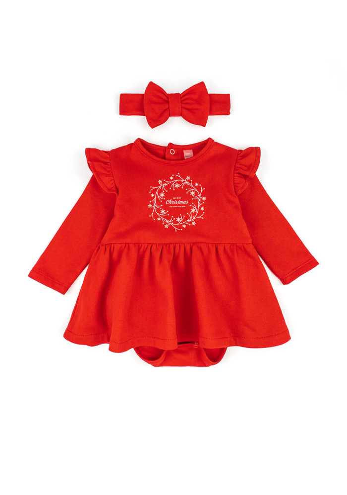 The Christmas bodysuit dress for baby girls is a complete festive outfit for your little one’s first holidays. Made from soft fleece-lined cotton fabric, it feels gentle on the skin and keeps your baby warm. Each bodysuit dress comes with a matching bow headband, completing the adorable holiday look.