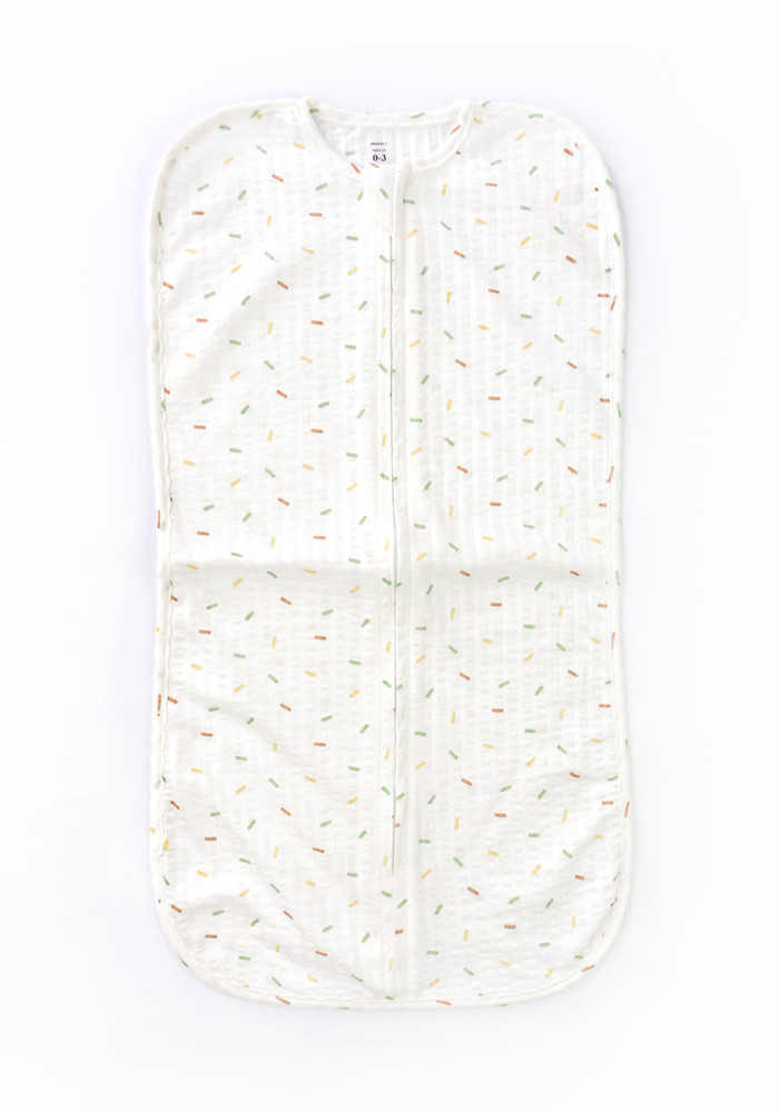 The Confetti swaddle cocoon is a soft and breathable wrap designed to keep newborns calm and cozy from the very first days of life. Its ergonomic shape provides gentle restriction of movement, mimicking the comforting sensation of the womb.