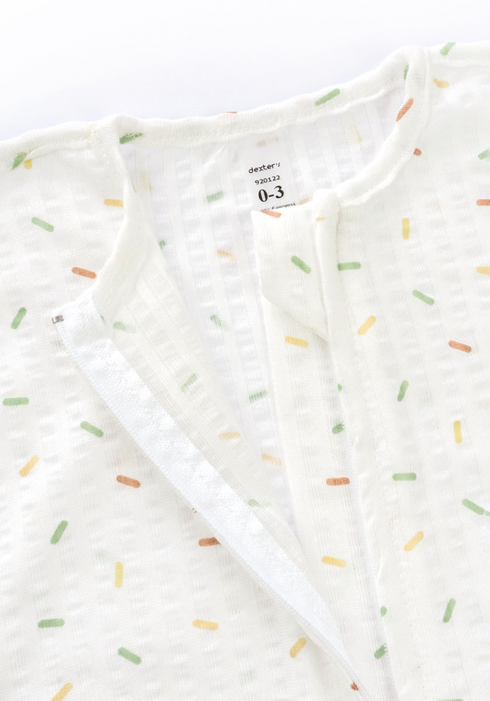 Crafted from 100% cotton interlock jersey, this cocoon is ideal for sensitive baby skin. The bright multicolor confetti print on a white background adds cheerful style and is suitable for both boys and girls.