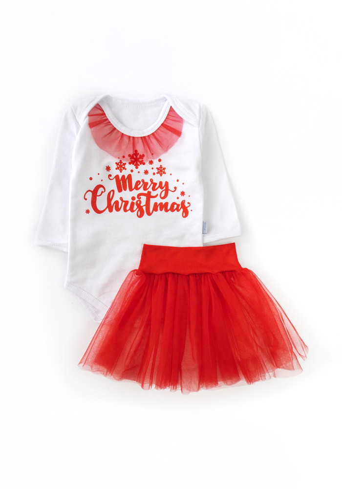 Baby Girl Christmas Outfit with Bodysuit and Red Tulle Skirt
