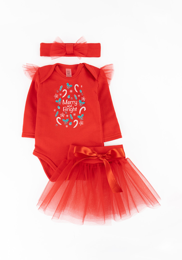 Merry and Bright 3 in 1 Holiday Outfit for Girls – Bodysuit, Skirt, Headband