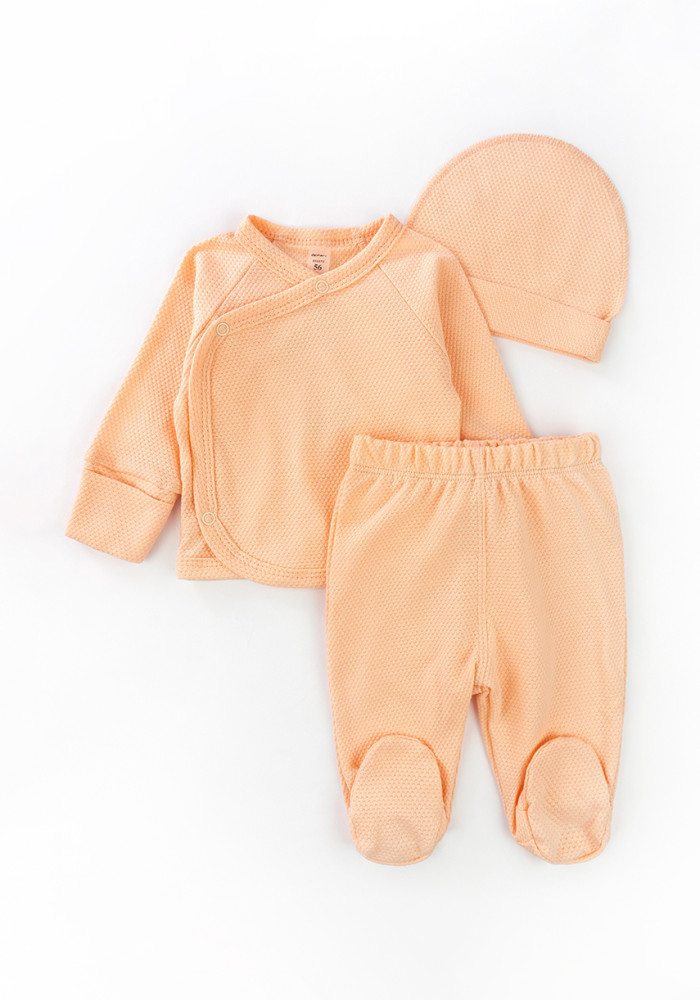 3-piece set for a newborn girl: gown, crawlers, hat.