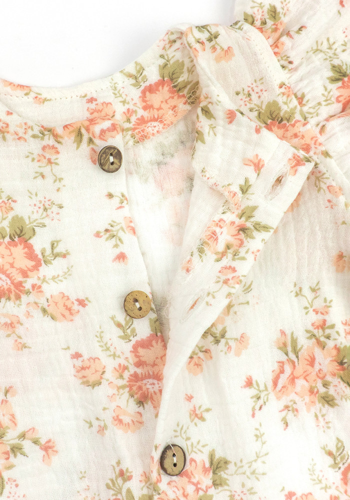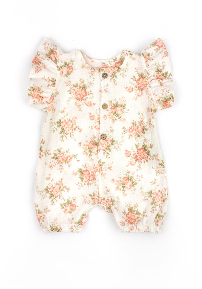 This lightweight and breathable muslin romper for baby girl is the perfect choice for warm weather. Made from natural cotton fabric, this baby girl summer outfit ensures comfort and softness for delicate skin.