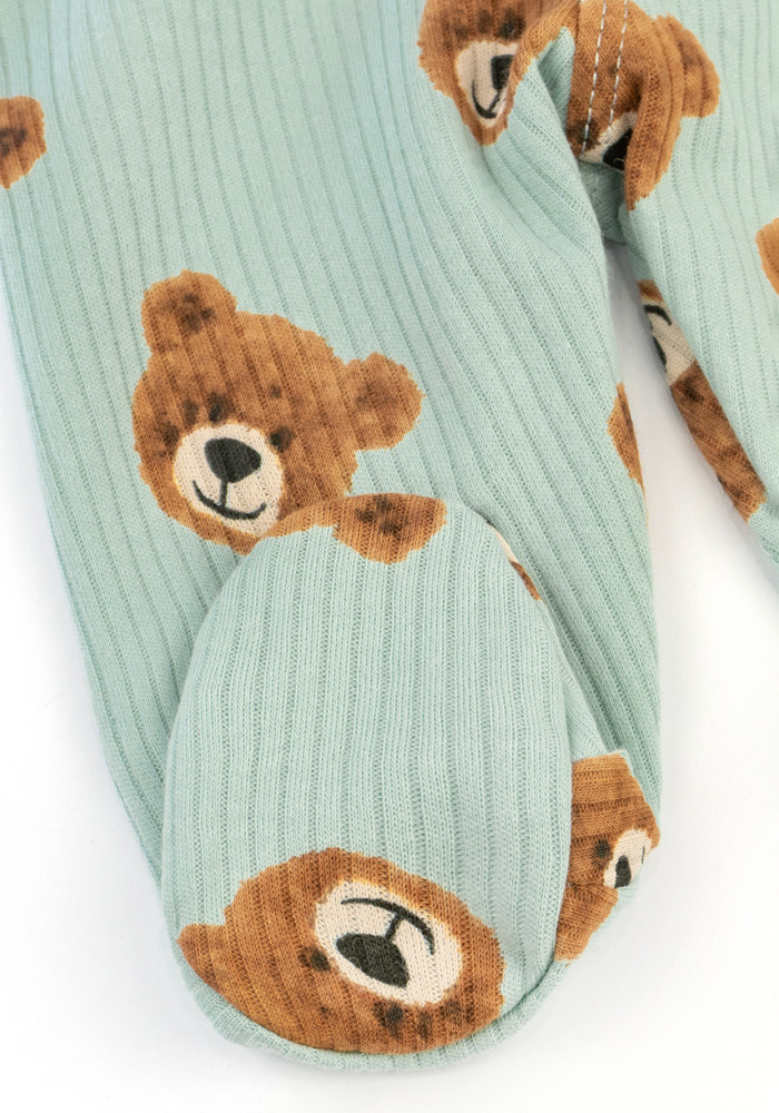 Adorable blue footed pants for newborns with a cute bear print. Made from 100% soft cotton interlock, gentle on delicate baby skin.