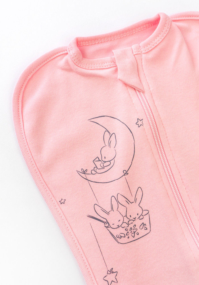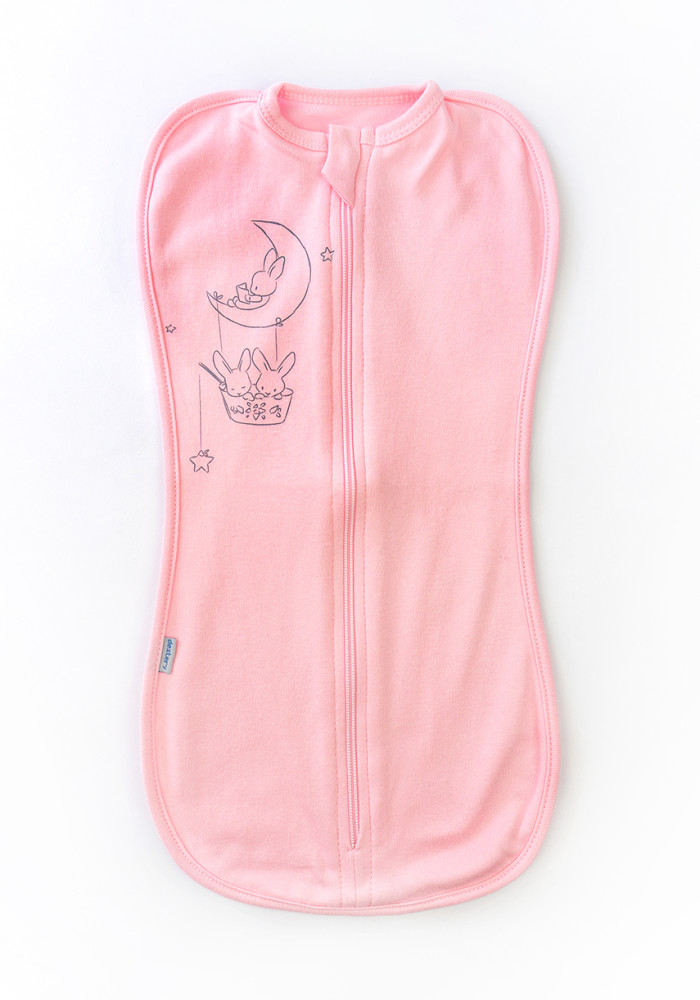 Має однотонний рожевий колір і охайний контурний малюнок із зайчиками.