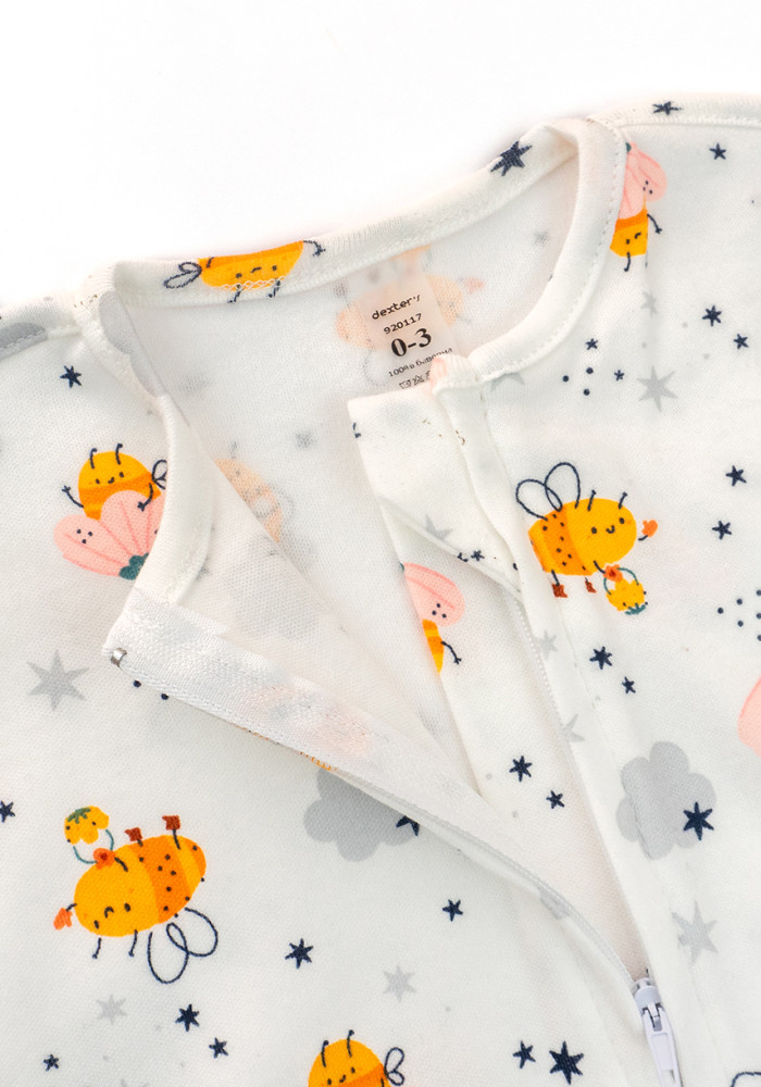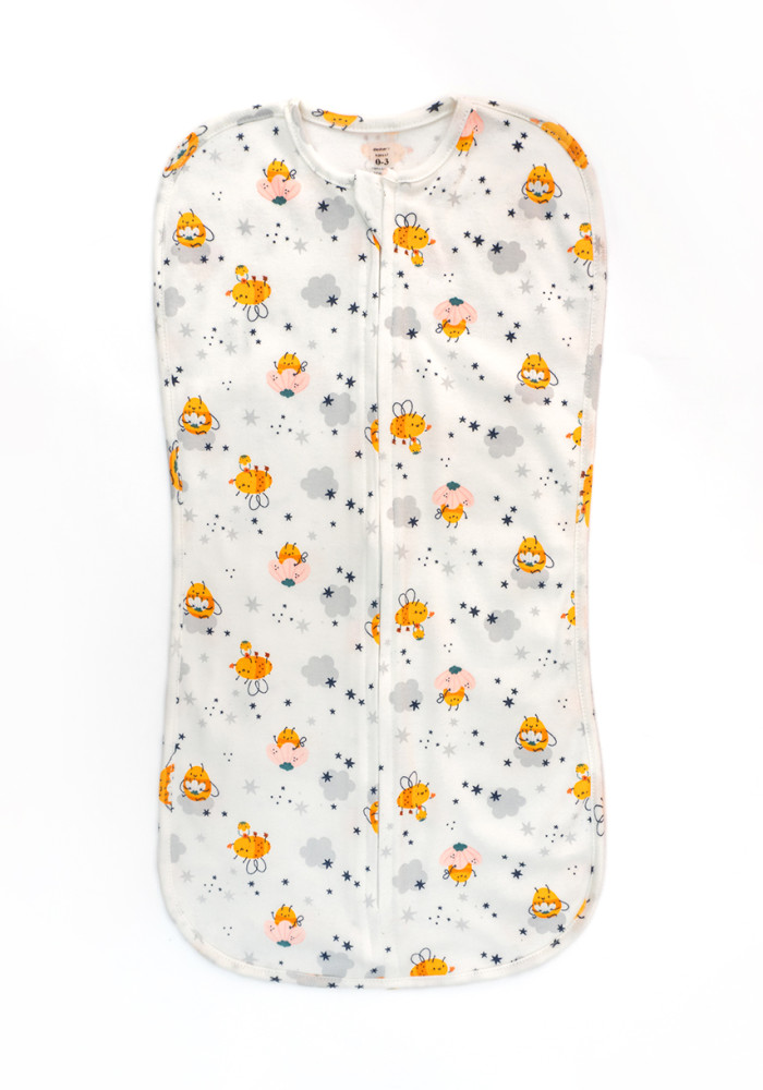 Пелюшка-кокон на блискавці з інтерлоку з принтом бджілки — практичне рішення для комфортного сповивання новонародженого. Виготовлена з м’якої та дихаючої тканини інтерлок (100% бавовна), яка підходить навіть для найчутливішої шкіри.