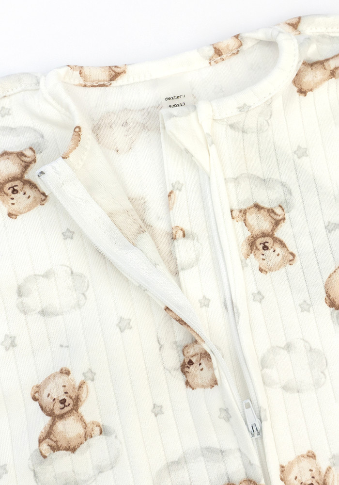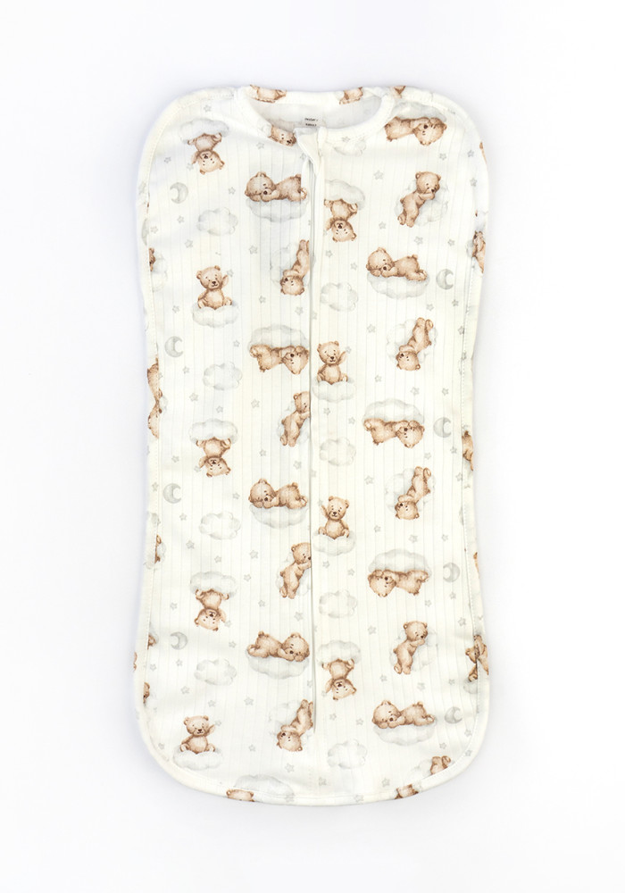 Молочна тканина з милим принтом ведмедиків на хмарках пасує як хлопчику, так і дівчинці. Кокон оснащений захистом блискавки, щоб уникнути контакту замка з ніжною шкірою малюка.
