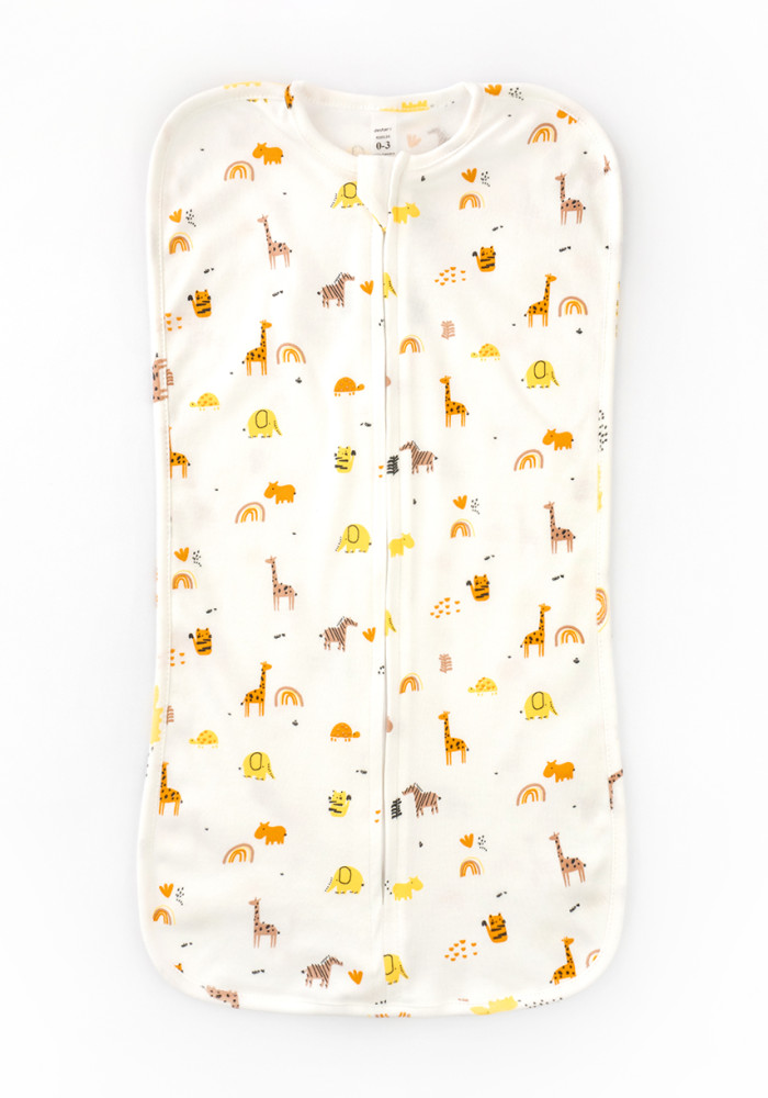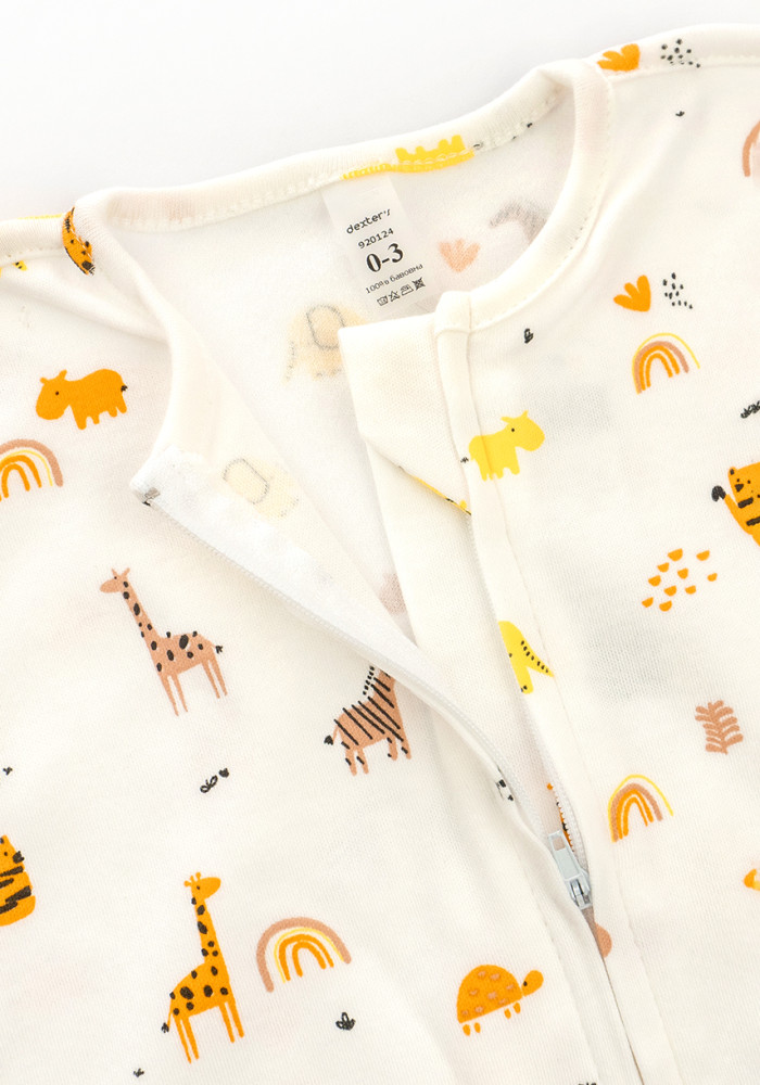 Європелюшка на блискавці молочного кольору з принтом африканських тваринок — зручне та безпечне рішення для спокійного сну новонародженого. Виготовлена з натурального інтерлок-трикотажу (100% бавовна), вона м’яка, еластична та дихаюча.