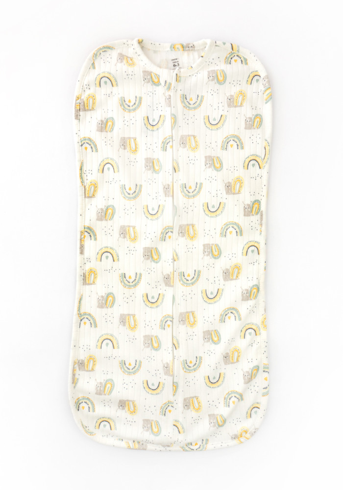 Еластична тканина повторює контури тіла новонародженого, не обмежуючи рухів. Завдяки зручній блискавці пелюшку-кокон легко знімати та надягати, не порушуючи сон дитини. Кокон запобігає самовільним рухам ручками, що часто будять немовля. Нейтральне забарвлення з веселками підходить як для хлопчиків, так і для дівчаток.