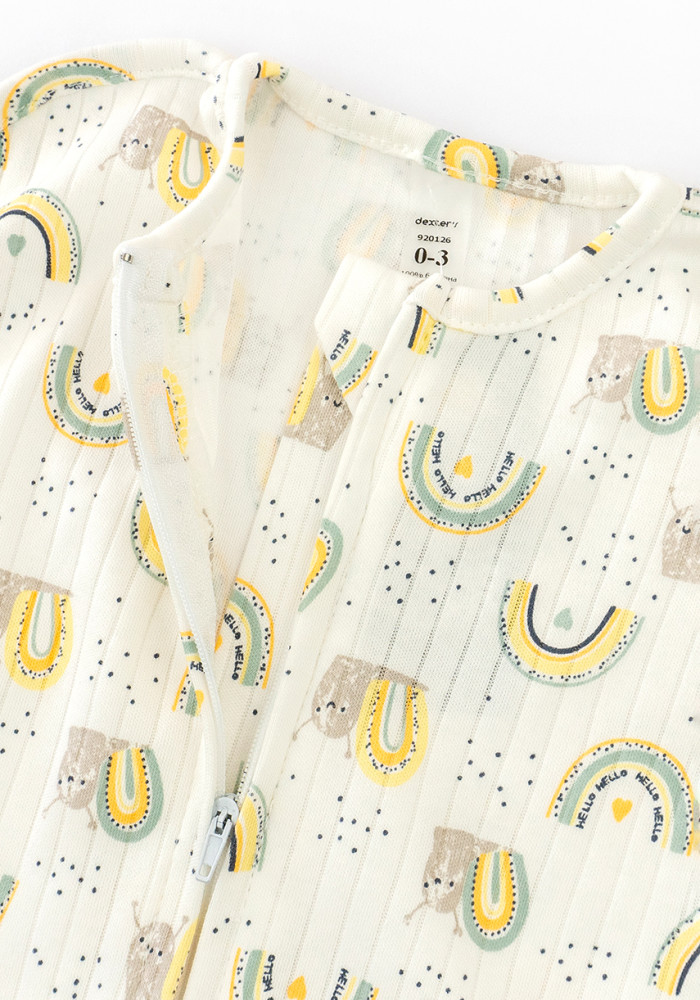 Молочна європелюшка на блискавці з принтом веселок — комфортне та безпечне рішення для перших тижнів життя малюка. Виготовлена з натурального інтерлок-рапорту (100% бавовна), вона приємна до тіла, м’яка та добре пропускає повітря.