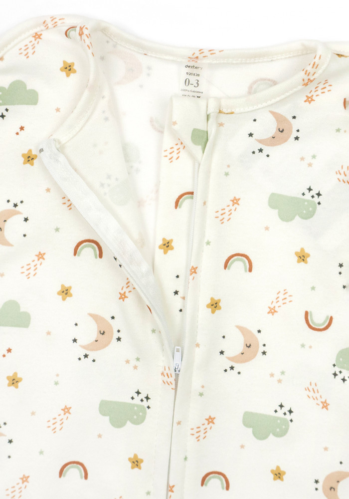 Ніжний молочний колір із принтом місяців створює затишний та стильний вигляд, роблячи цю пелюшку на блискавці чудовим вибором як для дому, так і для фотосесій.