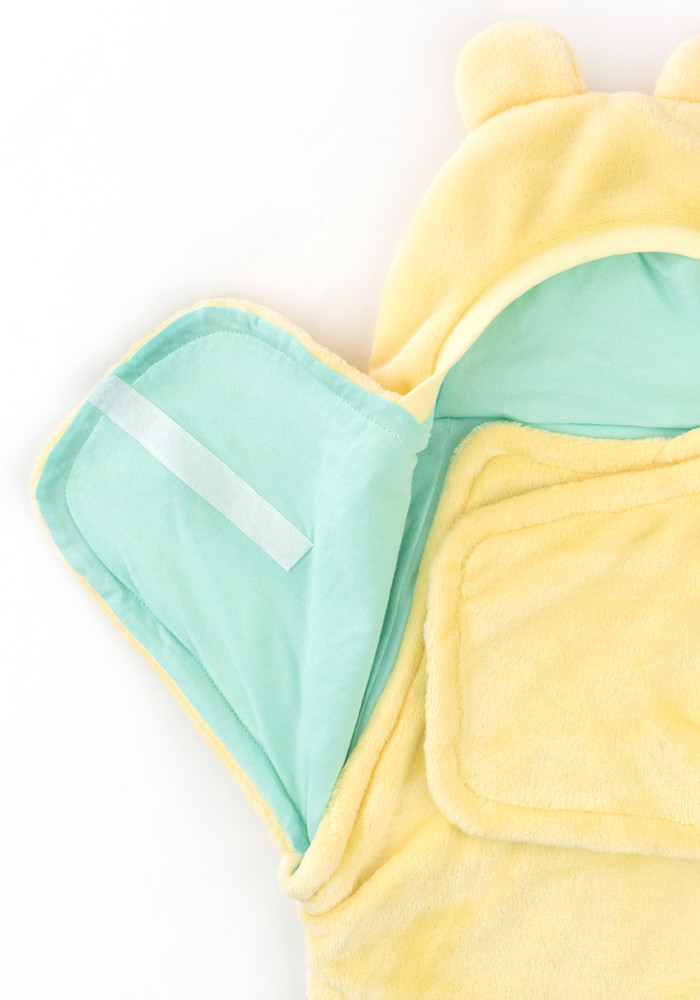 Теплий дитячий кокон із м’якого велсофту жовтого кольору — чудовий варіант для прогулянок у прохолодну пору року та для сну вдома. Завдяки натуральній бавовняній підкладці з куліру кокон добре зберігає тепло, не викликає подразнень і підходить навіть для чутливої шкіри немовлят.