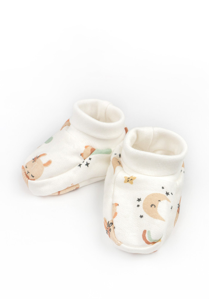 Пінетки для новонароджених пошиті з якісного бавовняного футера з начосом, який добре утримує тепло, пропускає повітря та не подразнює ніжну шкіру малюка. Натуральний склад робить ці теплі дитячі пінетки безпечними для щоденного використання з перших днів життя.