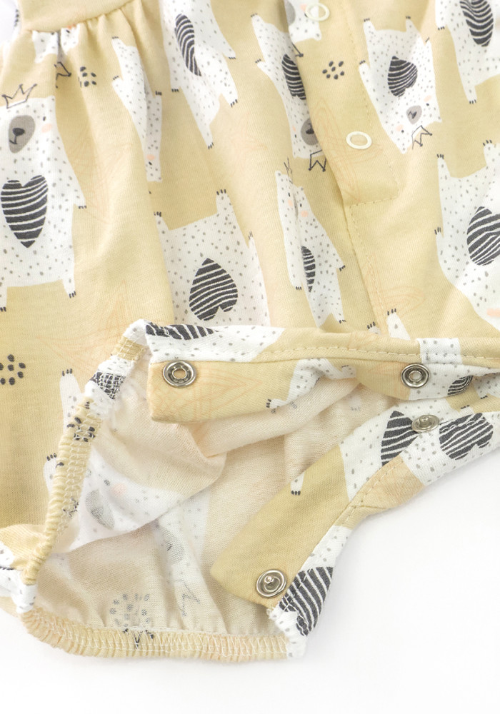 Стильний пісочник для дівчинки на кнопках — зручний та практичний варіант літнього одягу для немовлят. Модель поєднує комфорт натуральної тканини та милий дизайн, що робить її ідеальною як для щоденного носіння, так і для святкових подій.