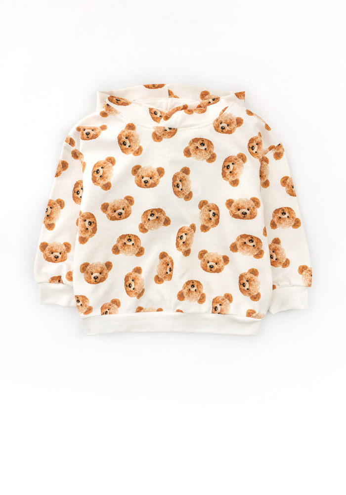 Klasyczna bluza dziecięca z drapanej dzianiny z nadrukiem misiów — dla chłopców i dziewczynek.