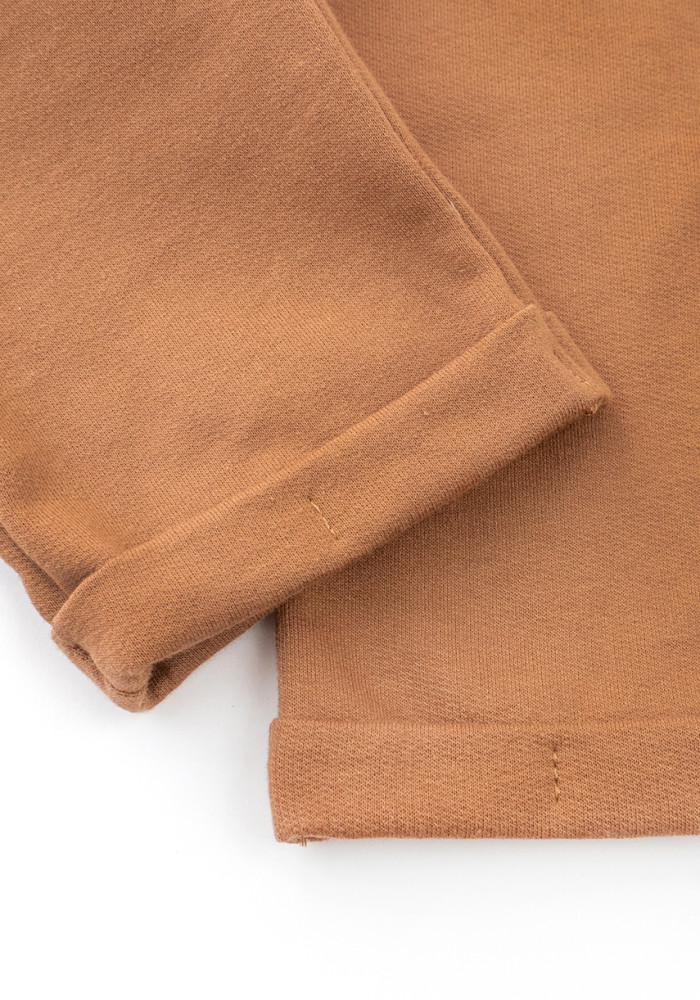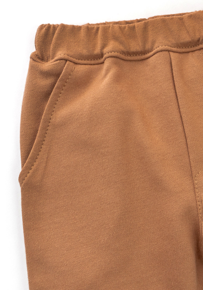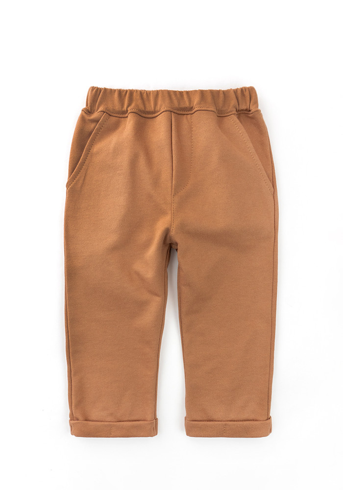 Beżowe, jednokolorowe spodnie dziecięce to uniwersalna baza każdej dziecięcej garderoby. Uszyte z miękkiej dzianiny (dresówka z meszkiem), doskonale utrzymują ciepło i zapewniają komfort w chłodniejsze dni.