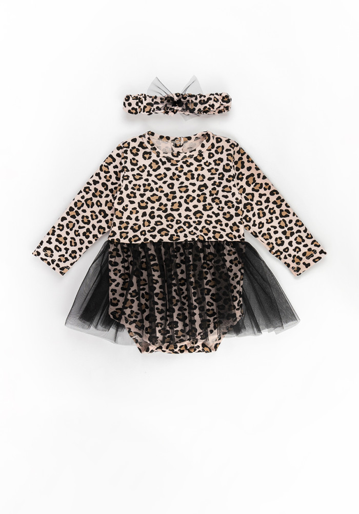 Modne body-sukienka dla dziewczynki w panterkowy wzór to idealne połączenie wygody i stylu.