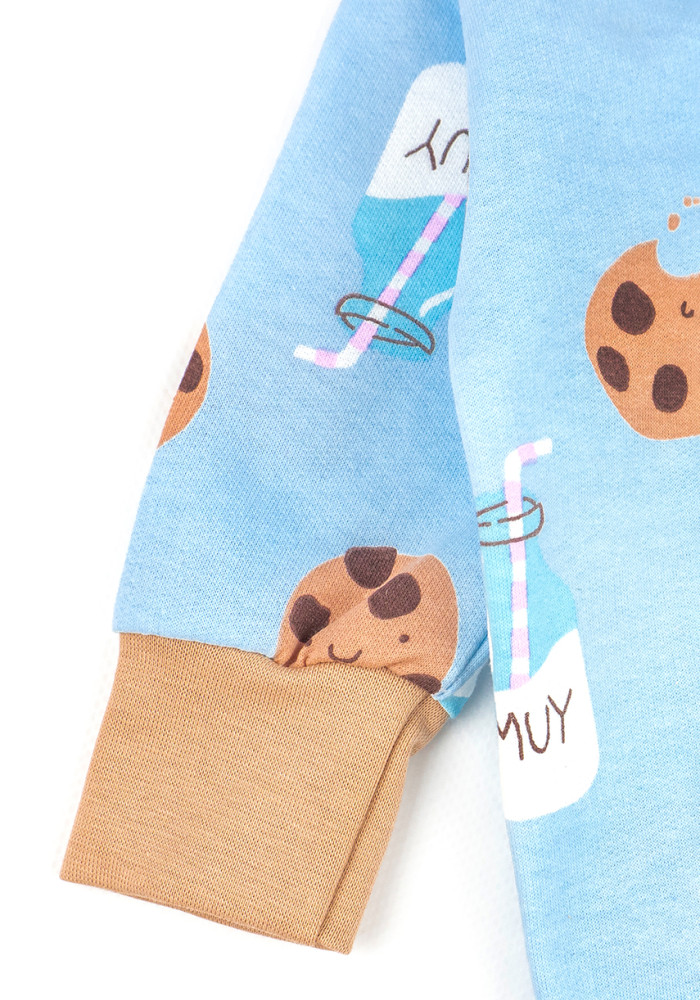 Kolorowy nadruk z ciasteczkami z pewnością przypadnie dziecku do gustu. Praktyczny zamek błyskawiczny na środku ułatwia szybkie przebieranie.