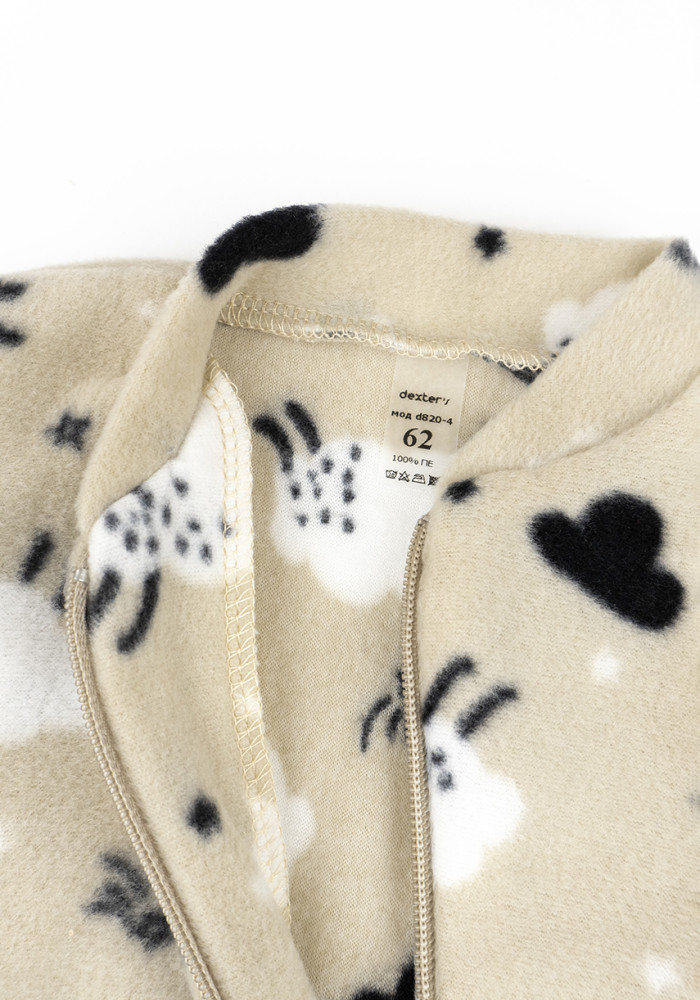 Ciepły kombinezon polarowy dla niemowląt w kolorze beżowym z uroczym nadrukiem owieczek to idealna propozycja na chłodniejsze dni. Praktyczny zamek błyskawiczny ułatwia przebieranie, a otwarte stópki pozwalają dziecku swobodnie odkrywać otoczenie. Miękki kołnierzyk chroni szyję, a przyjemna w dotyku tkanina skutecznie zatrzymuje ciepło.