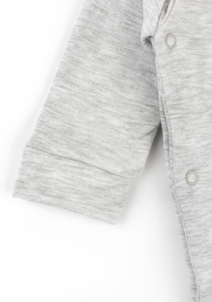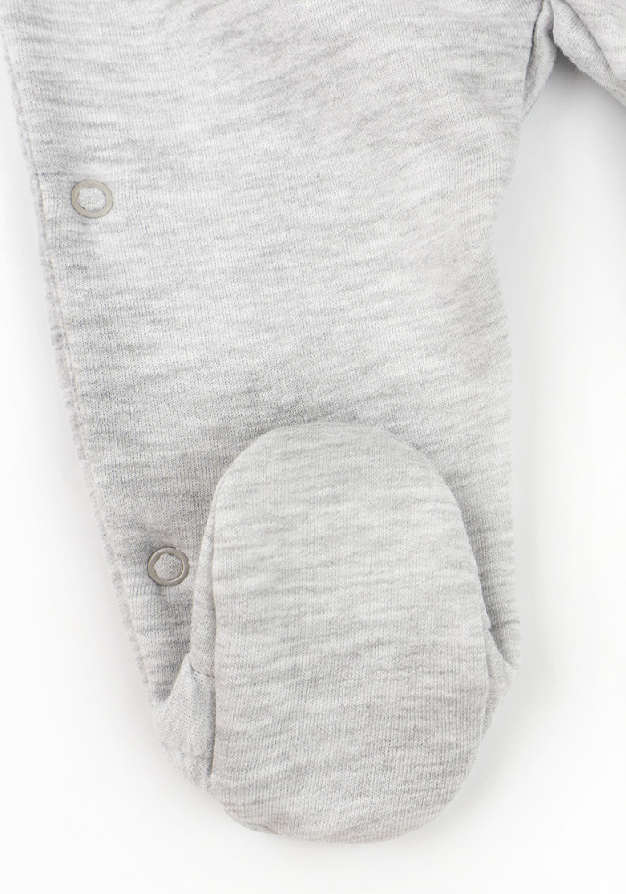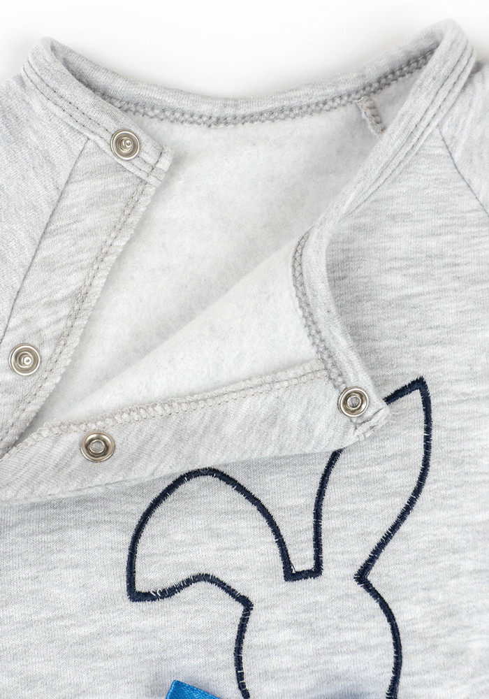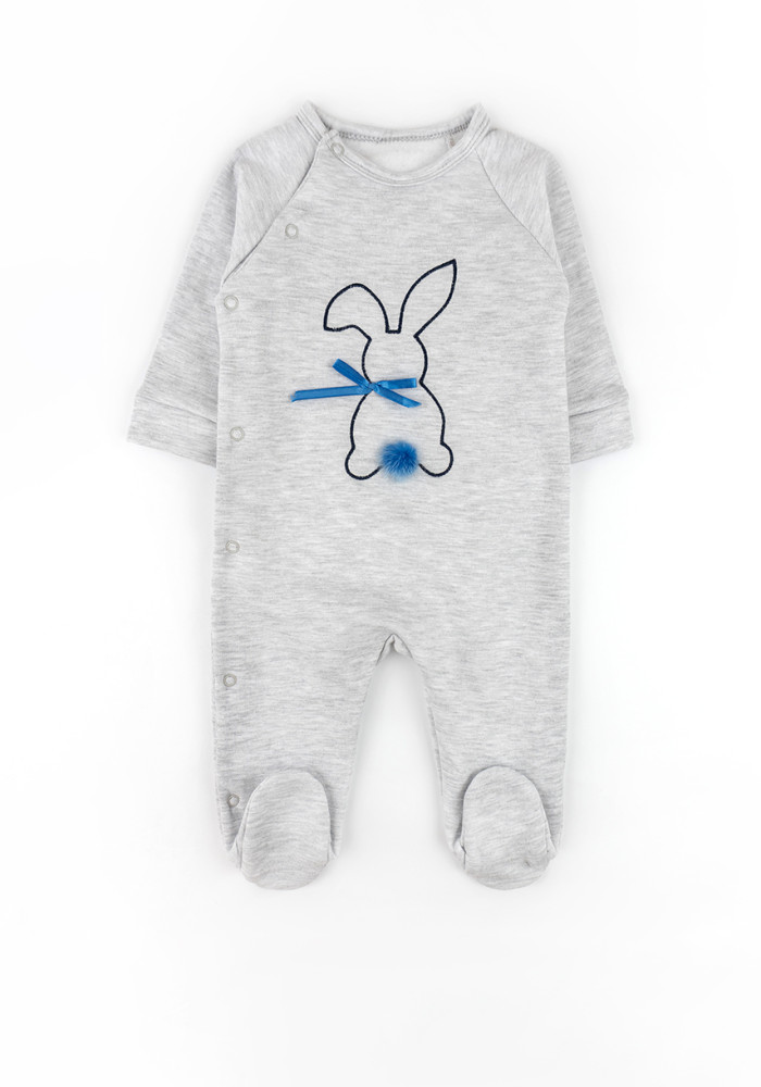 Miękki i ciepły rampers niemowlęcy wykonany z bawełny drapanej (100% bawełna) to idealna propozycja na chłodniejsze dni. Szary kolor jest uniwersalny, a haft z króliczkiem i puszystym ogonkiem nadaje ubranku uroku.