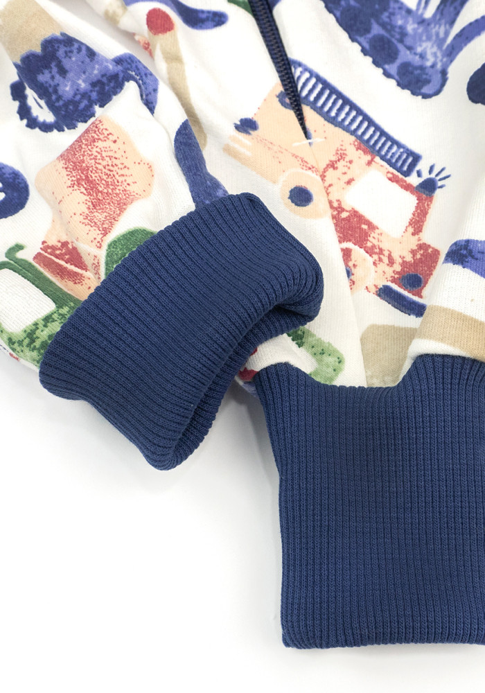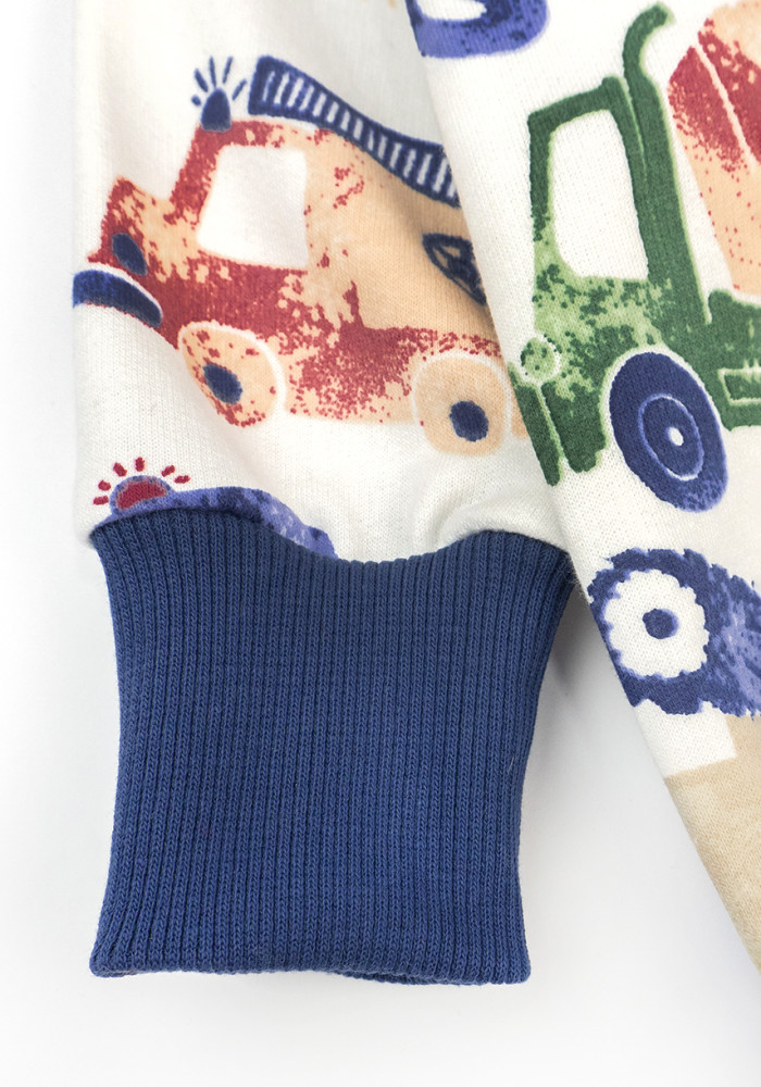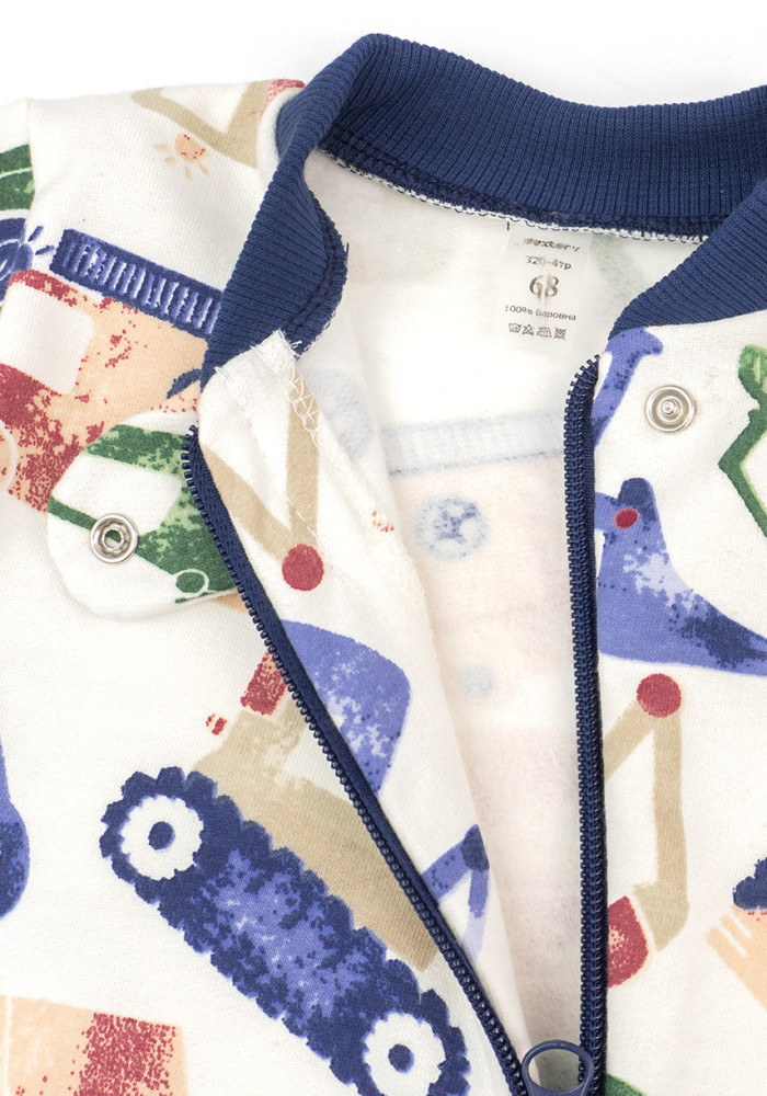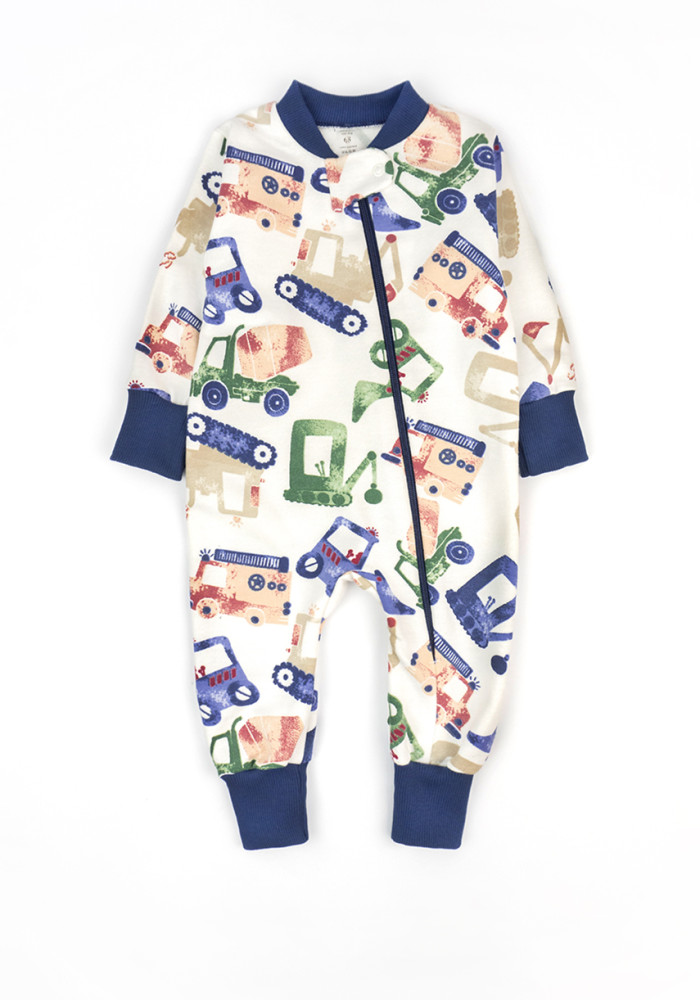 Śpioszek dla chłopca z nadrukiem traktorów i samochodzików to idealny wybór na chłodniejsze dni. Wykonany z miękkiego i ciepłego dresu z meszkiem (100% bawełna), gwarantuje komfort i bezpieczeństwo dla wrażliwej skóry dziecka.