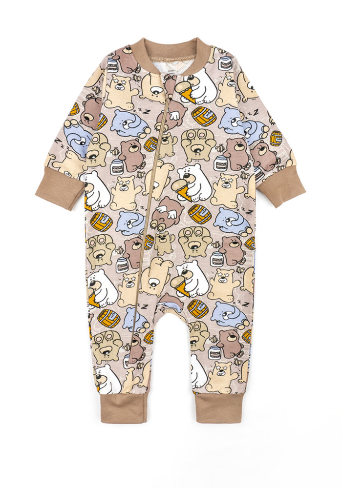 Delikatny beżowy kolor z motywem misiów sprawia, że ten kombinezon niemowlęcy jest uniwersalny i odpowiedni zarówno dla chłopca, jak i dziewczynki.