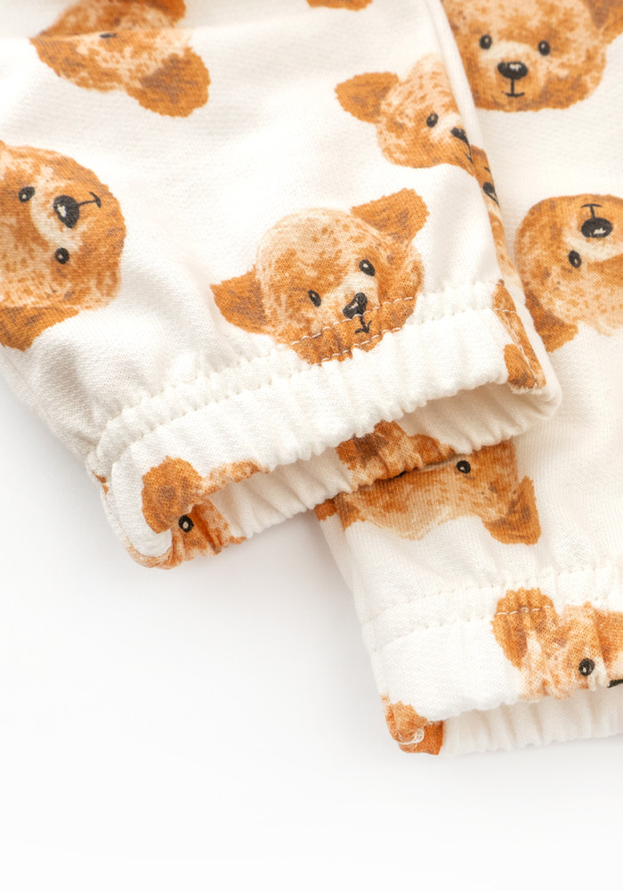 Ciepły i wygodny zestaw dla dziewczynki z uroczym nadrukiem misia — idealny na chłodne dni jesieni i zimy.