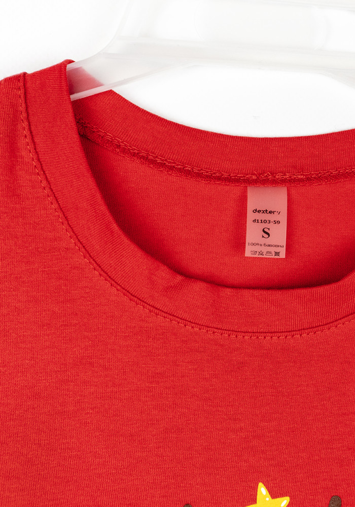 Женская футболка из красного кулира с новогодним принтом с оленем создана для праздничного настроения и уюта.