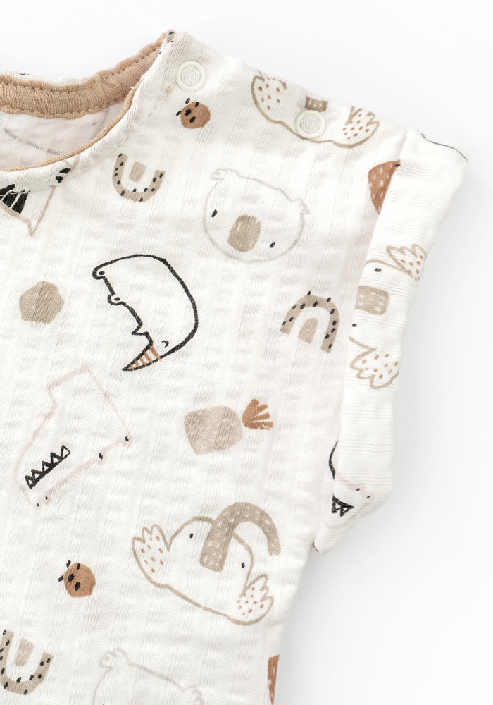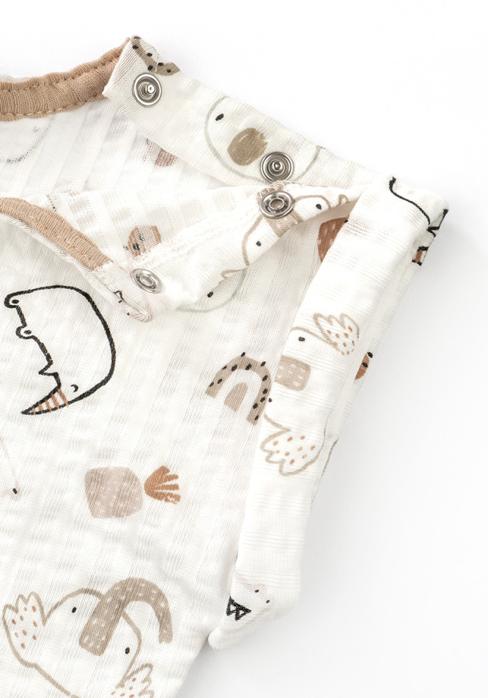 Изготовлен из мягкого и дышащего интерлока (100% хлопок), обеспечивает комфорт и бережное отношение к чувствительной коже ребёнка.