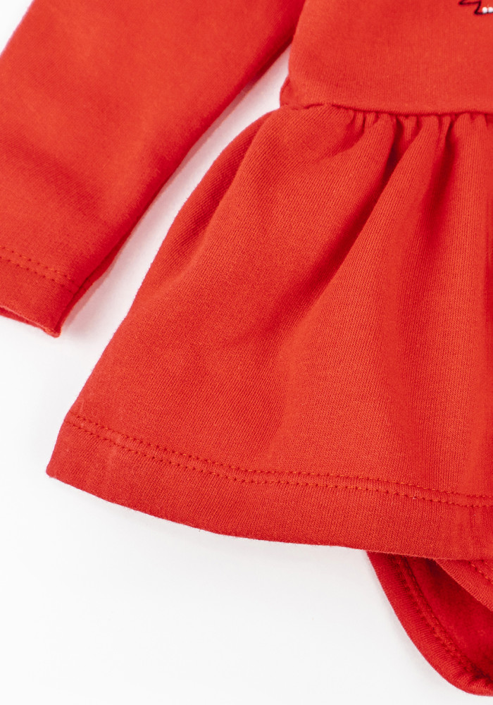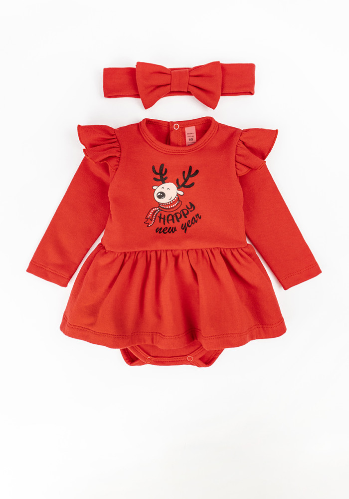 Тёплое красное боди-платье для девочки с повязкой | 100% хлопок