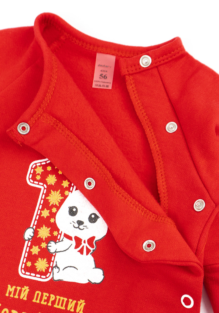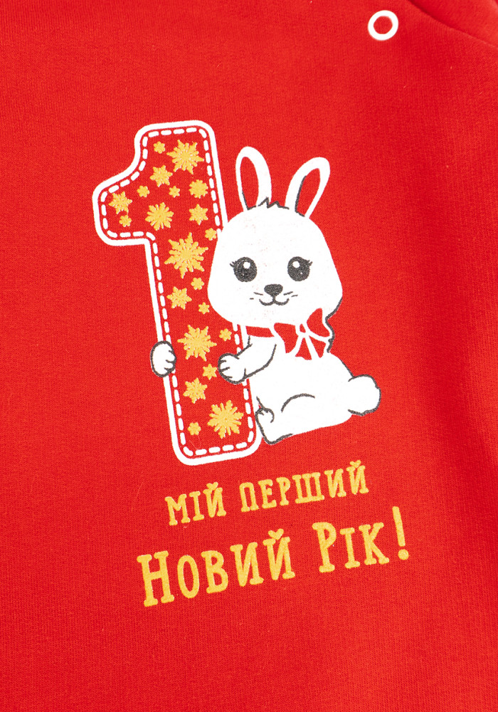 Уютный новогодний человечек из футера с начёсом — отличный выбор для зимних праздников и домашнего уюта. Мягкая, плотная ткань сохраняет тепло и приятна на ощупь. Яркий красный цвет создаёт праздничное настроение, а принт с зайчиком придаёт наряду очарование.