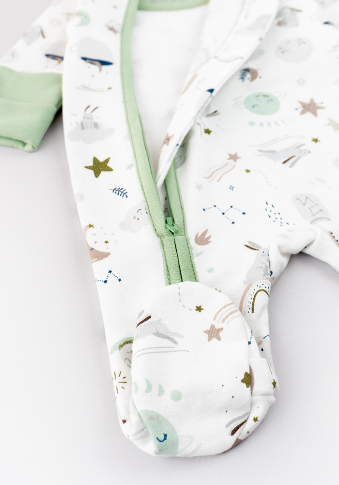 Принт с зайчиками и оливковая окантовка подойдут как для мальчиков, так и для девочек.