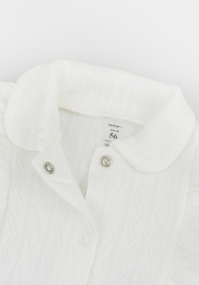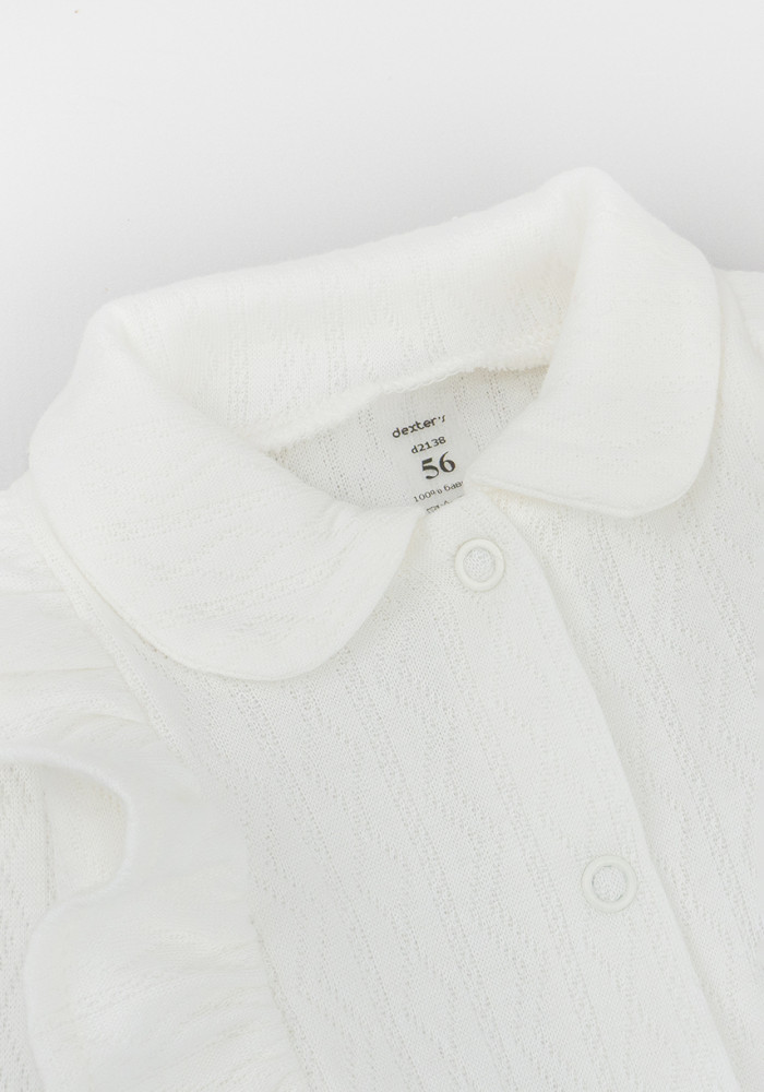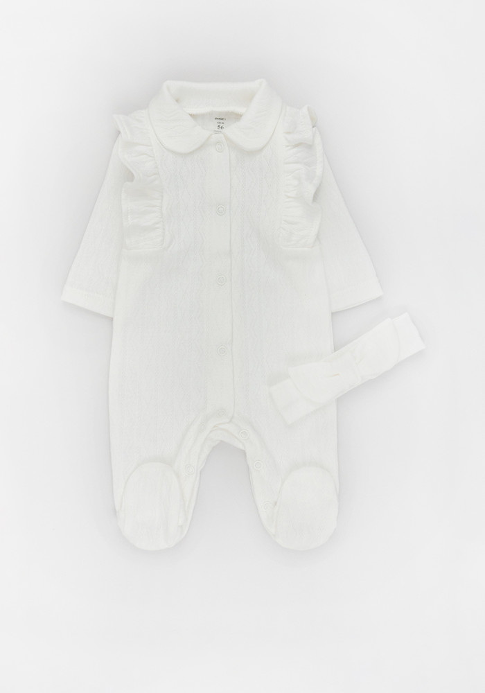 Нежный комплект для новорожденной девочки в изысканном молочном цвете — идеальный выбор на выписку из роддома и для повседневного использования. Этот нарядный и одновременно практичный комплект для младенца подойдет для фотосессии, семейных мероприятий и ежедневного комфорта.