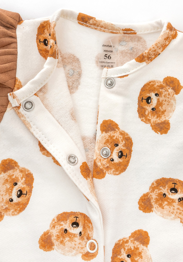 Тёплый и стильный комбинезон от украинского бренда Dexters – это готовый образ для выписки из роддома, фотосессии или ежедневного использования с первых дней жизни малышки.