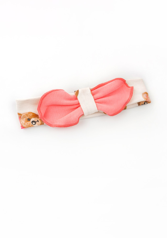 Удобная застёжка на кнопках до памперса — для лёгкого переодевания. В комплект входит повязка с бантиком в тон.