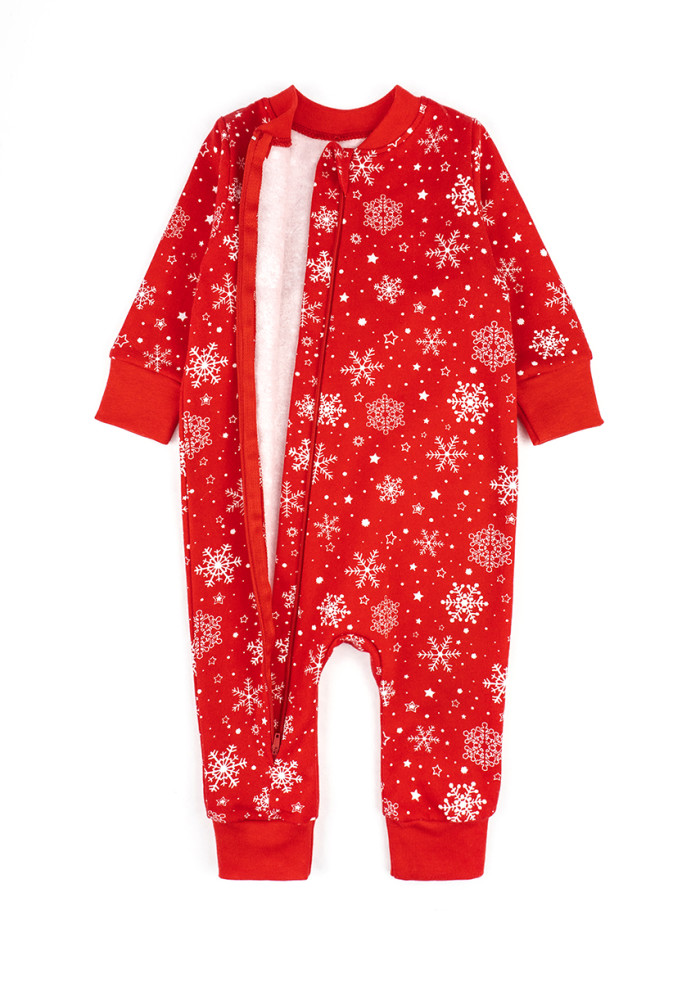 Теплый новогодний комбинезон для новорожденных с начесом выполнен из натурального футера (100% хлопок) — мягкого и дышащего материала, который подарит малышу уют и комфорт в холодное время года.