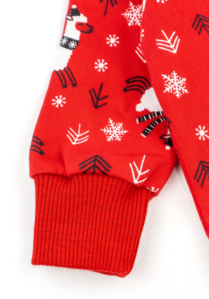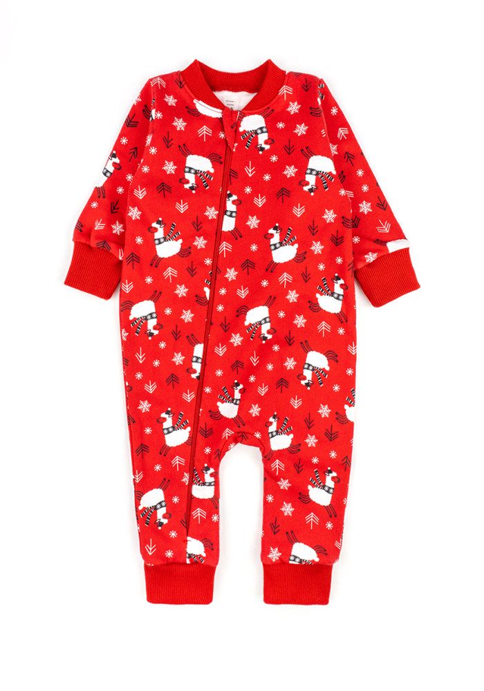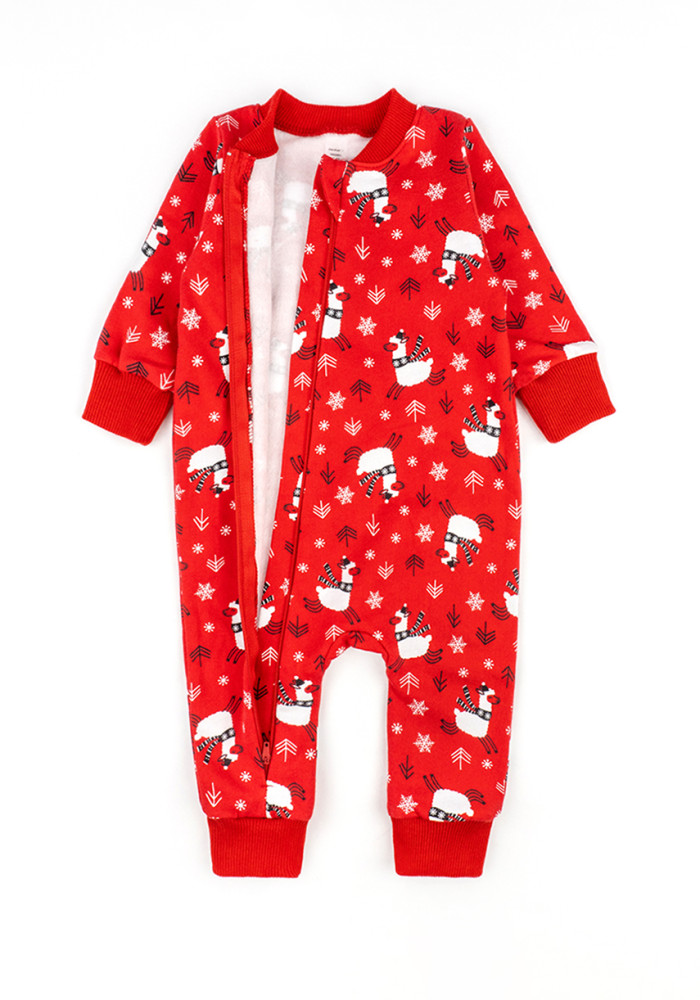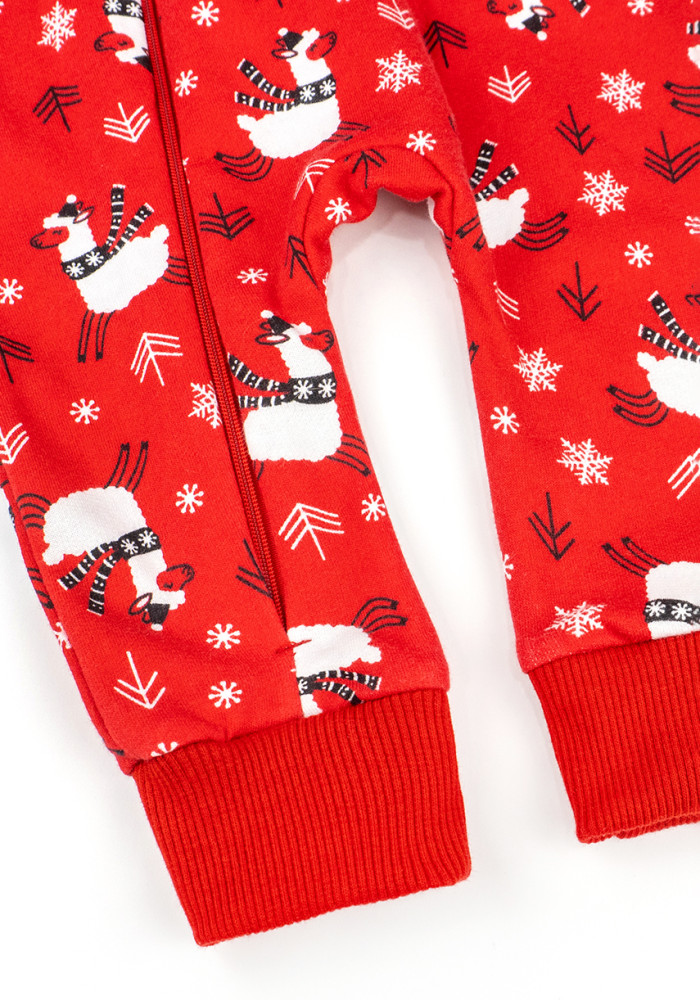Этот хлопковый слип для новорожденного идеально подходит для сна дома и удобен для ношения под верхнюю одежду на прогулку. Красный цвет с принтом лам делает модель яркой и универсальной — подходит и мальчикам, и девочкам.