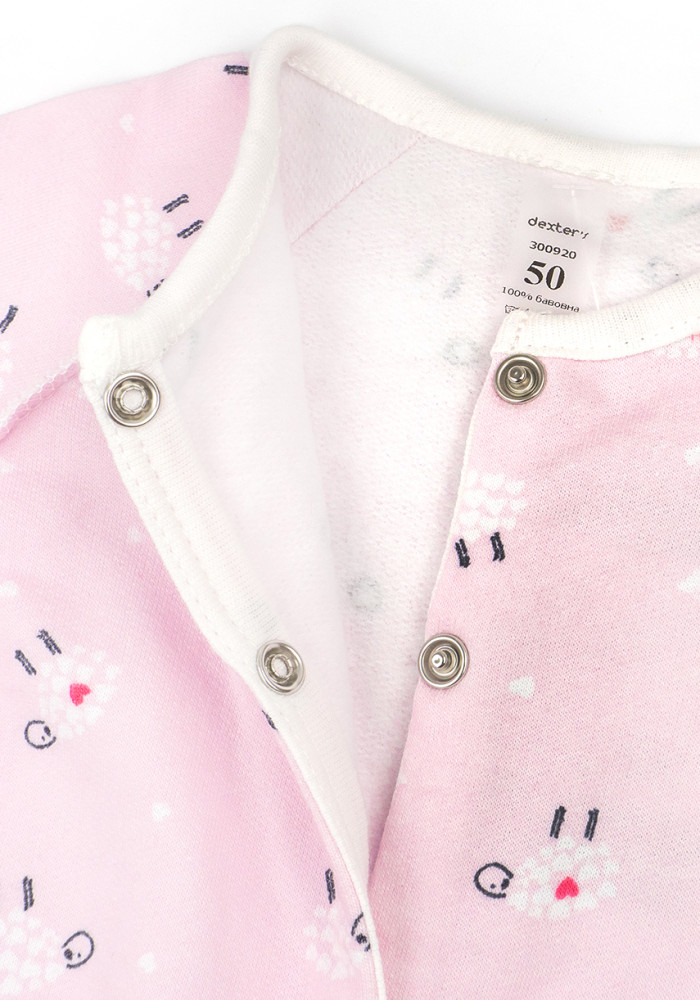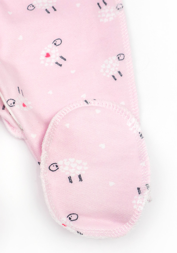Комбинезон выполнен из утеплённой ткани футер с начёсом, которая сохраняет тепло и остаётся мягкой даже после частых стирок. Нежно-розовый цвет с милыми овечками отлично подойдёт для девочки.