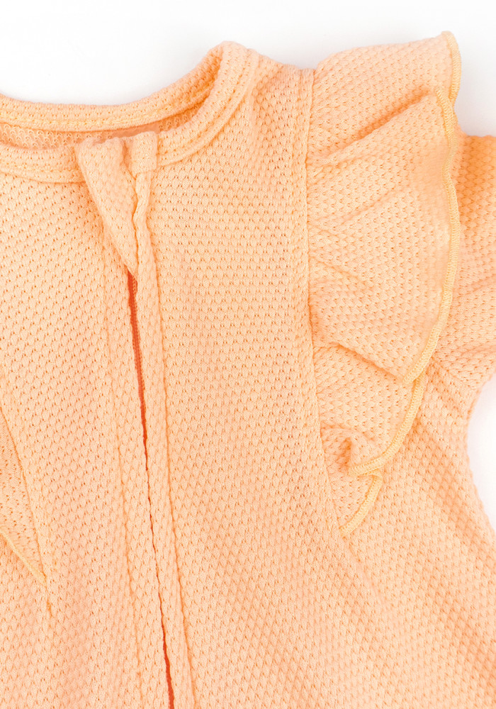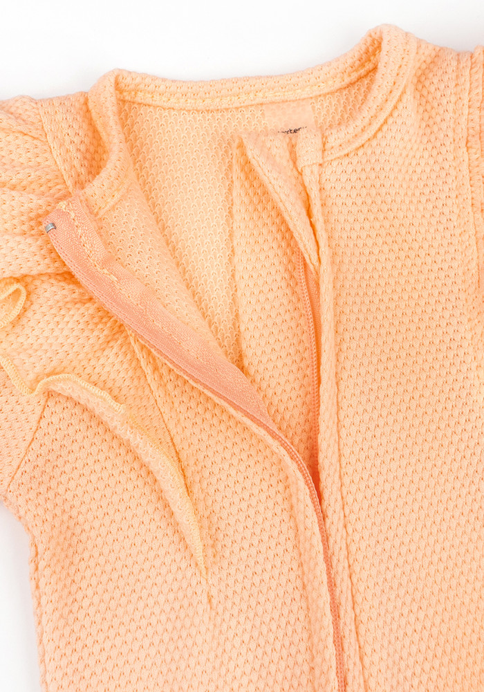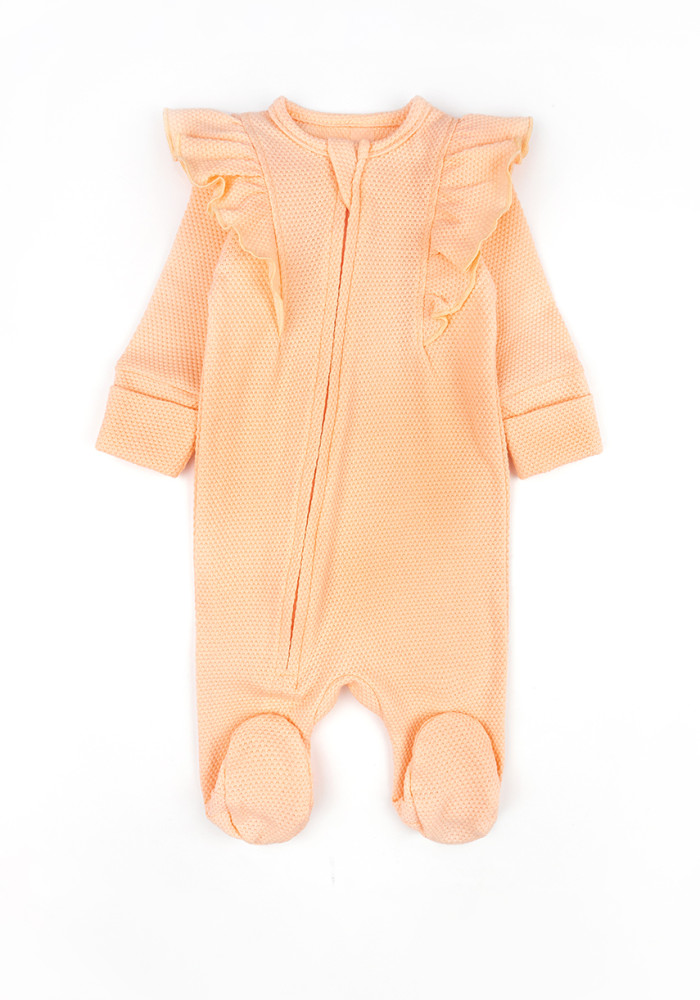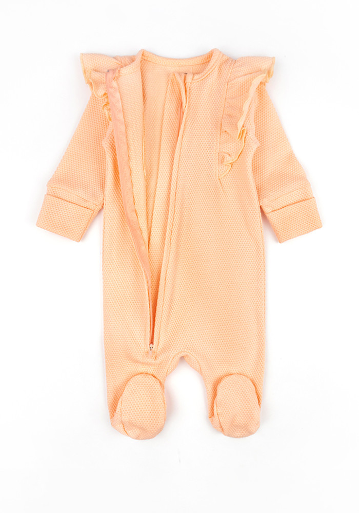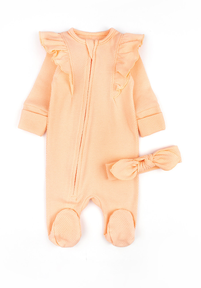 Персиковый детский комбинезон сочетает комфорт, практичность и современный стиль. Это отличный вариант одежды для новорождённой девочки как для роддома, так и для праздничных событий и памятных фотосессий.