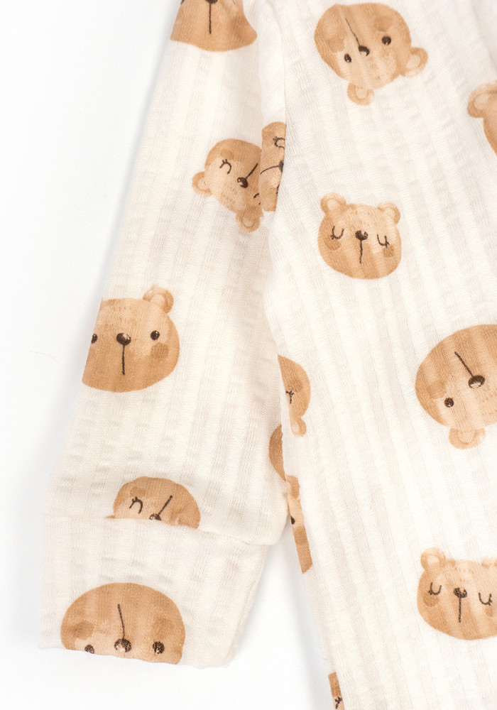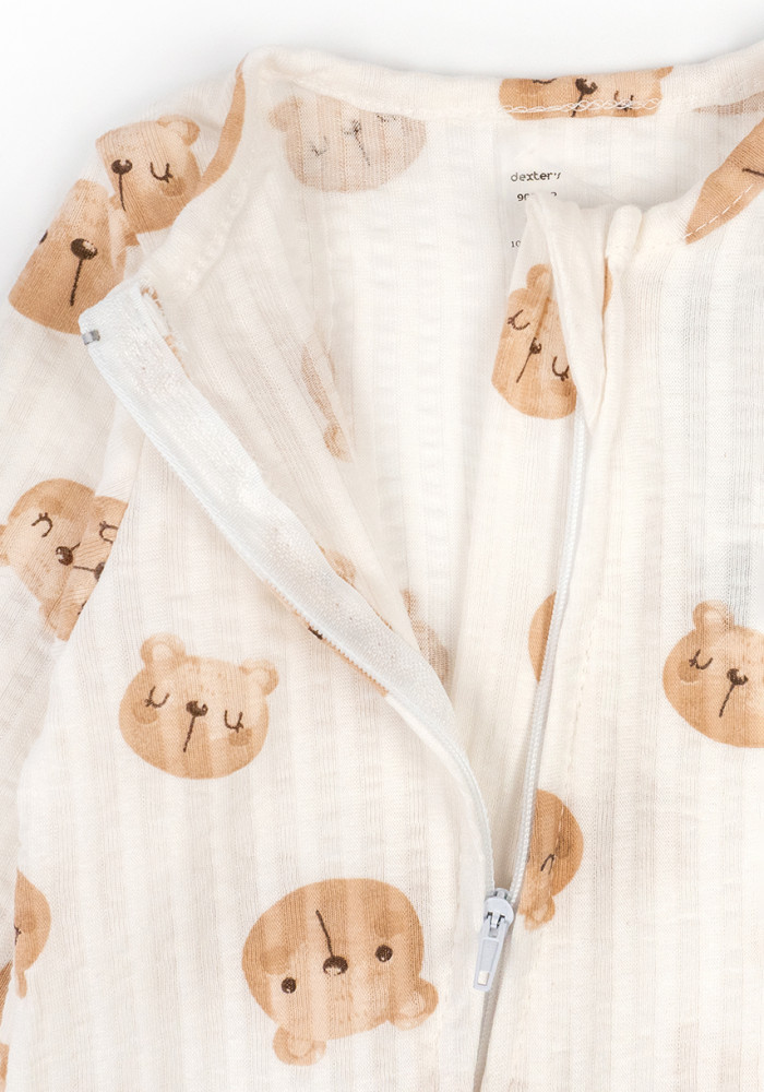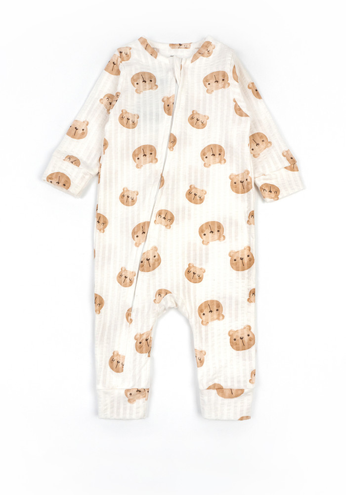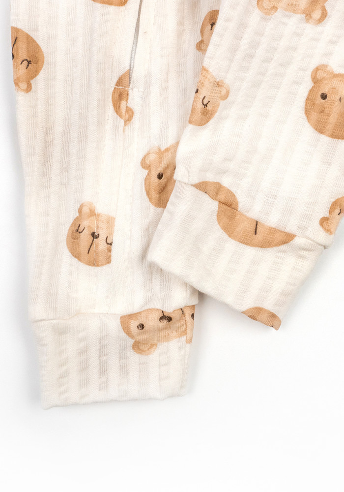 Мягкий и стильный детский слип на молнии в молочном цвете с милым принтом мишек подойдет как для мальчика, так и для девочки. Это удобный комбинезон для новорожденных, который обеспечивает комфорт, безопасность и практичность.